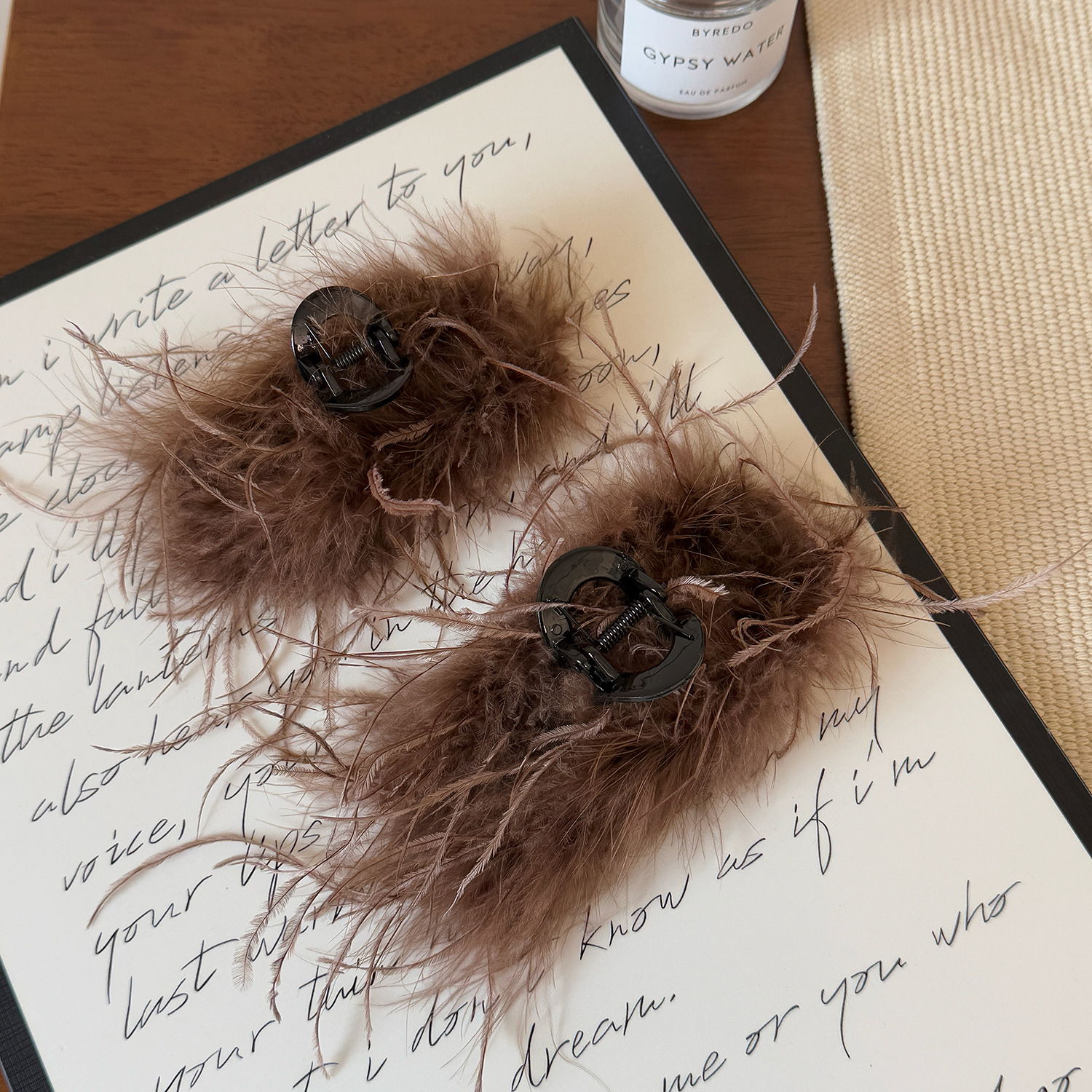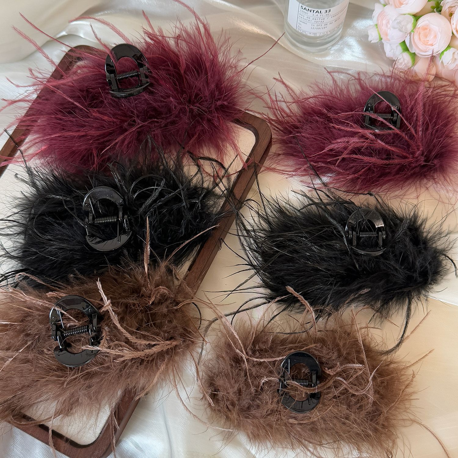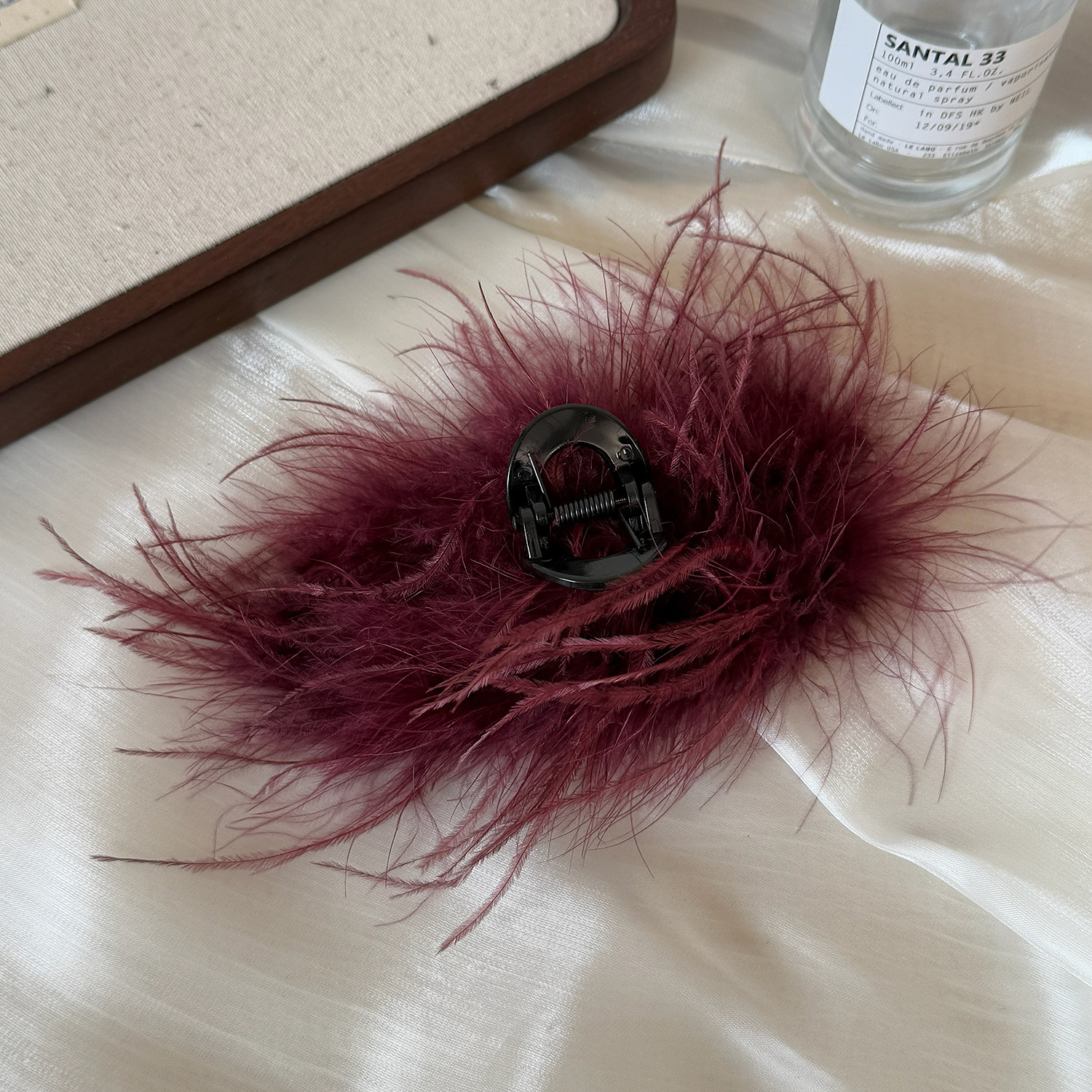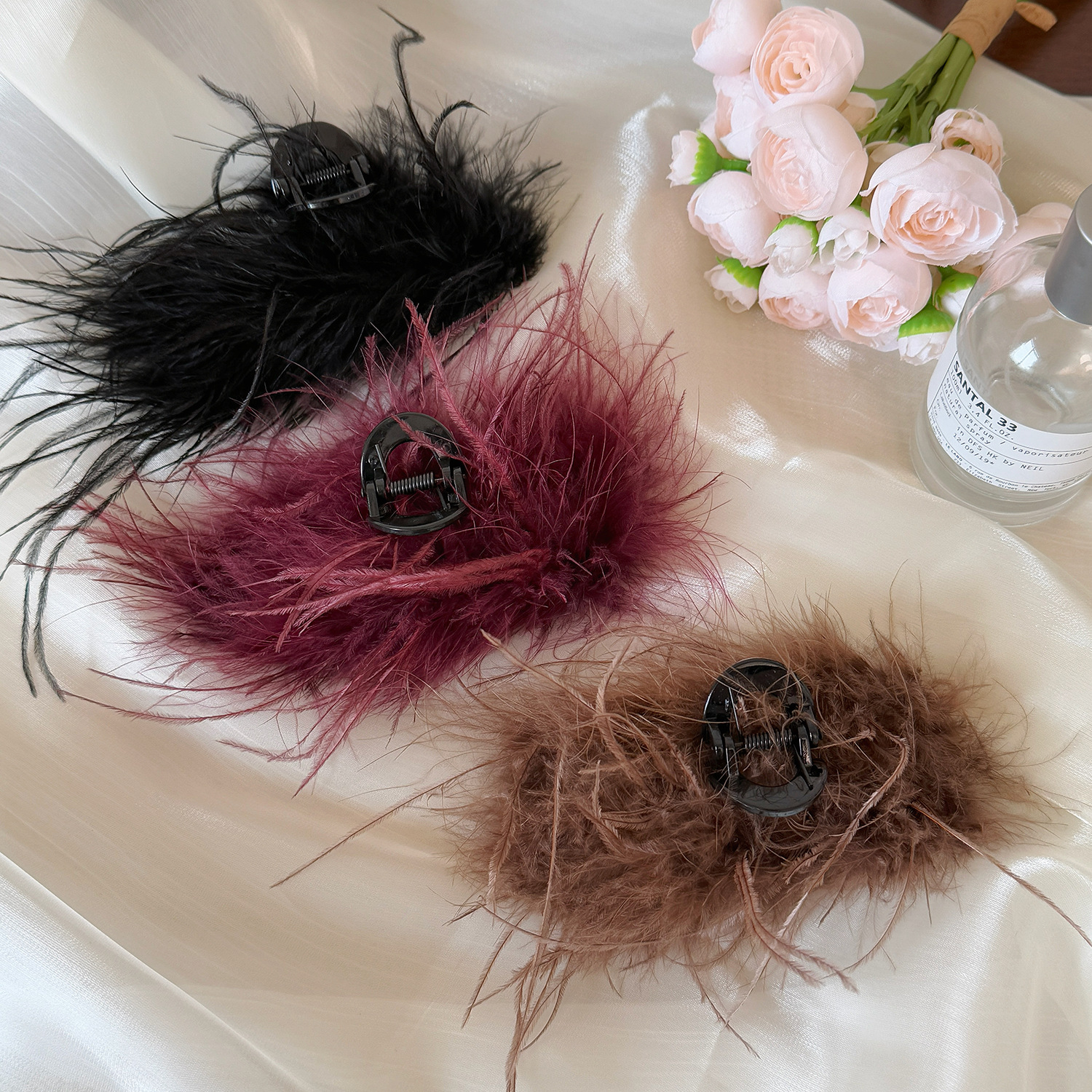 모발 볼륨을 보여주는 대형 깃털 집게, 고급스러운 새로운 스타일의 뒷머리 머리핀, 여성용 타조털 상어 집게