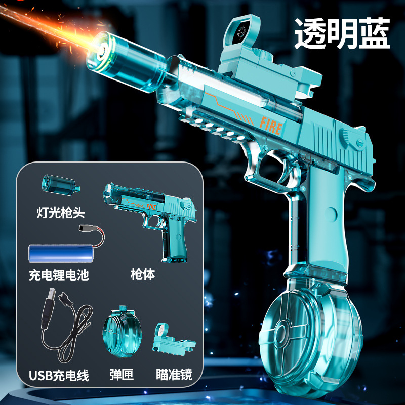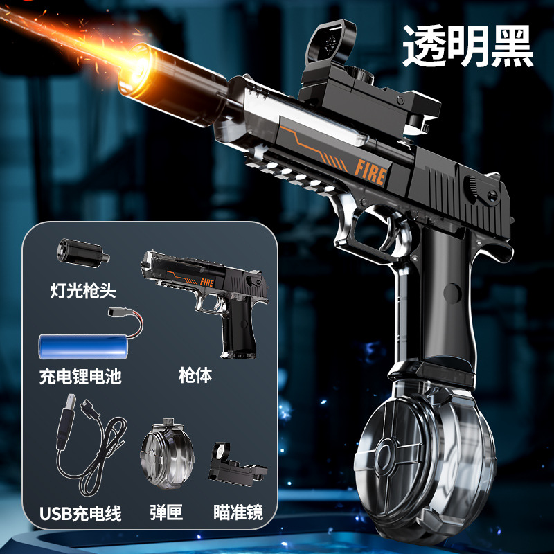 국경 간 인기 모델 불꽃 작은 사막 독수리 전기 물총 어린이 남성 불꽃 스프레이 연속 연결 리필 펄스 도매스토어 가기