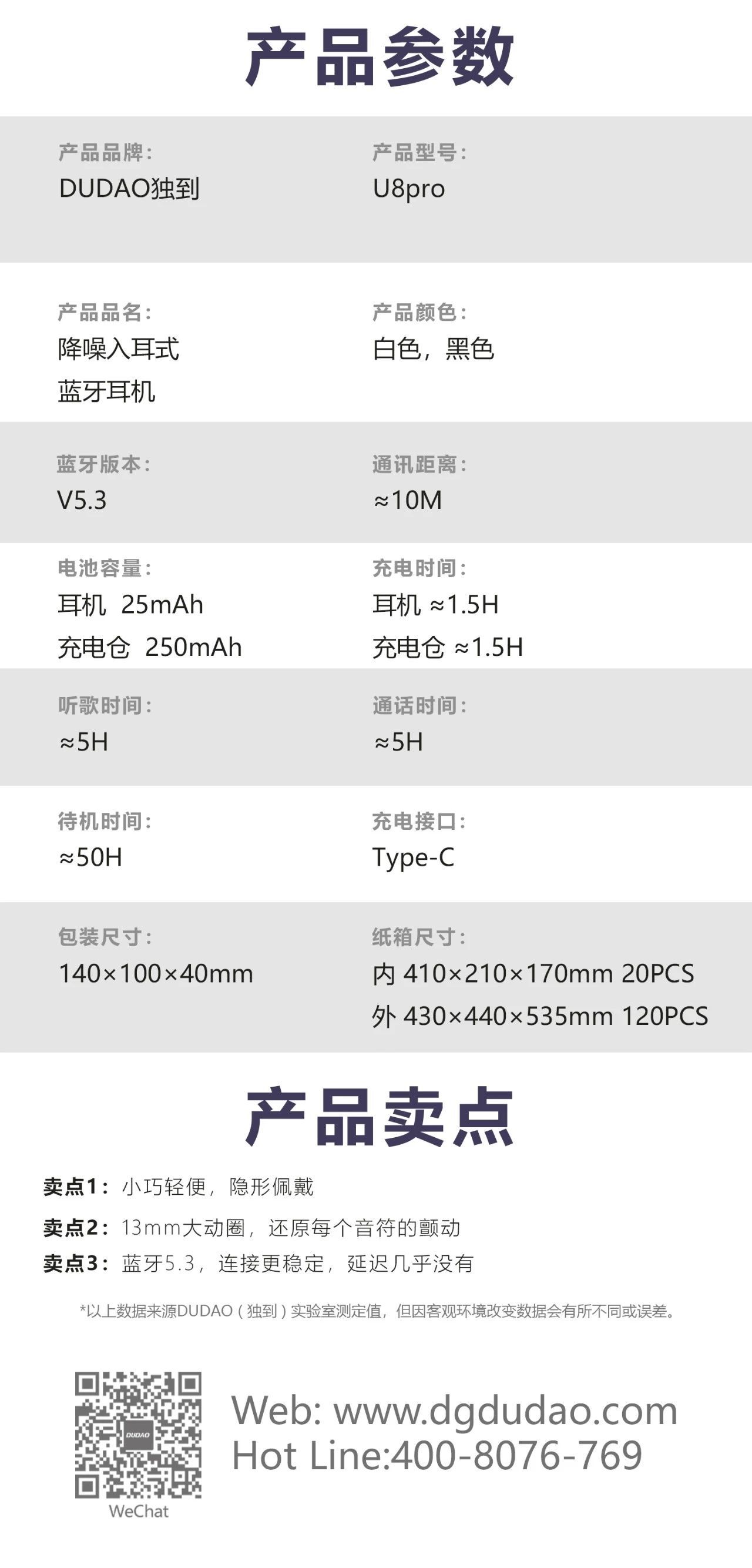 U8Pro 入耳式无线蓝牙耳机 限价69