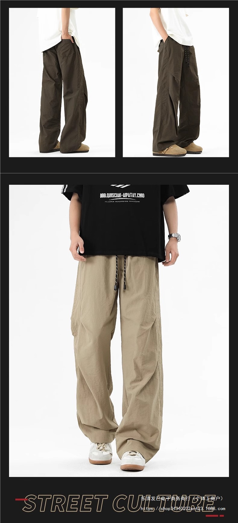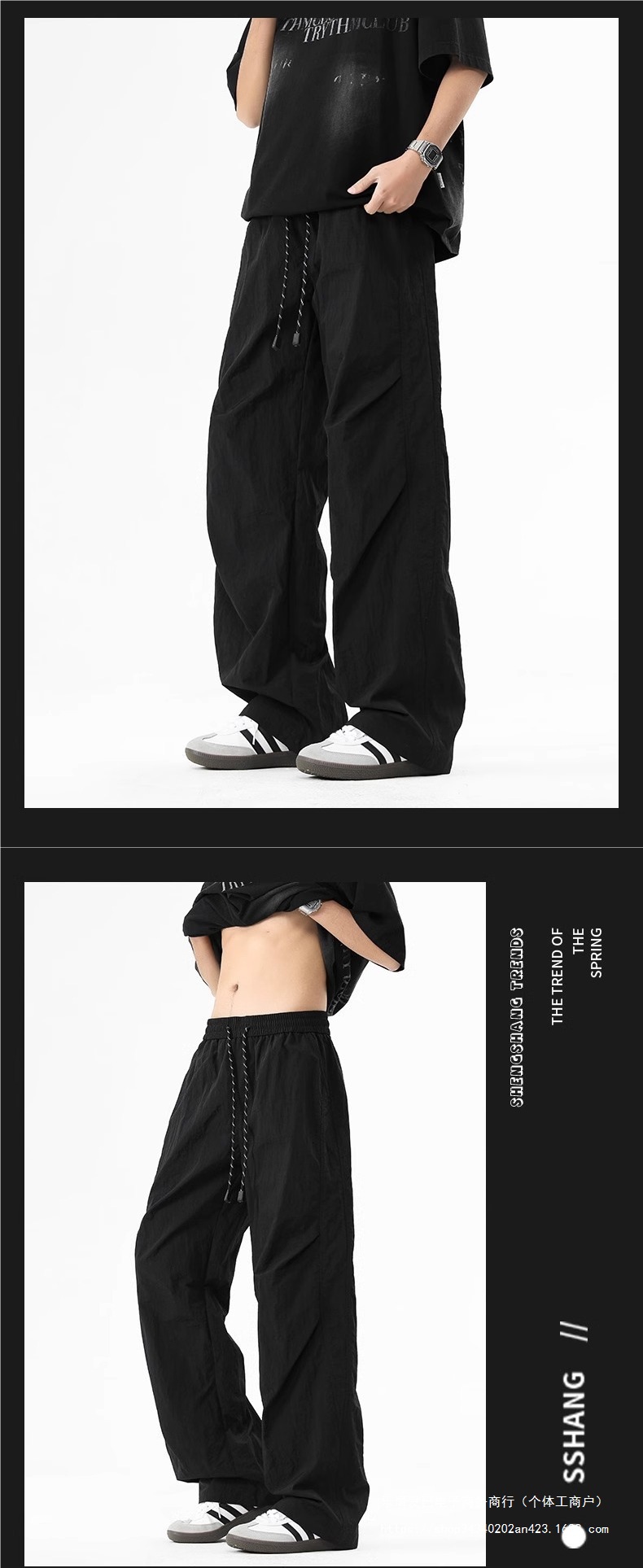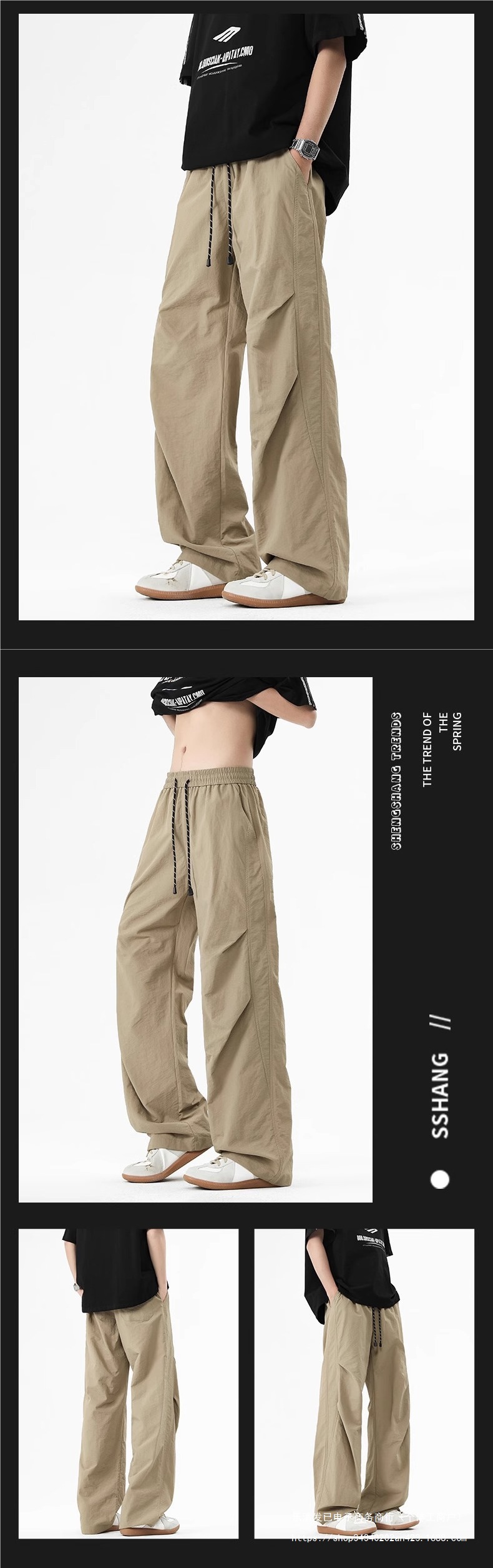 NASA 트렌디 브랜드 파라슈티스트 자켓, 다용도 남성 봄, 가을 미국식 와이드 레그 루즈 캐주얼 바지 여름 아이스 실크스토어 가기