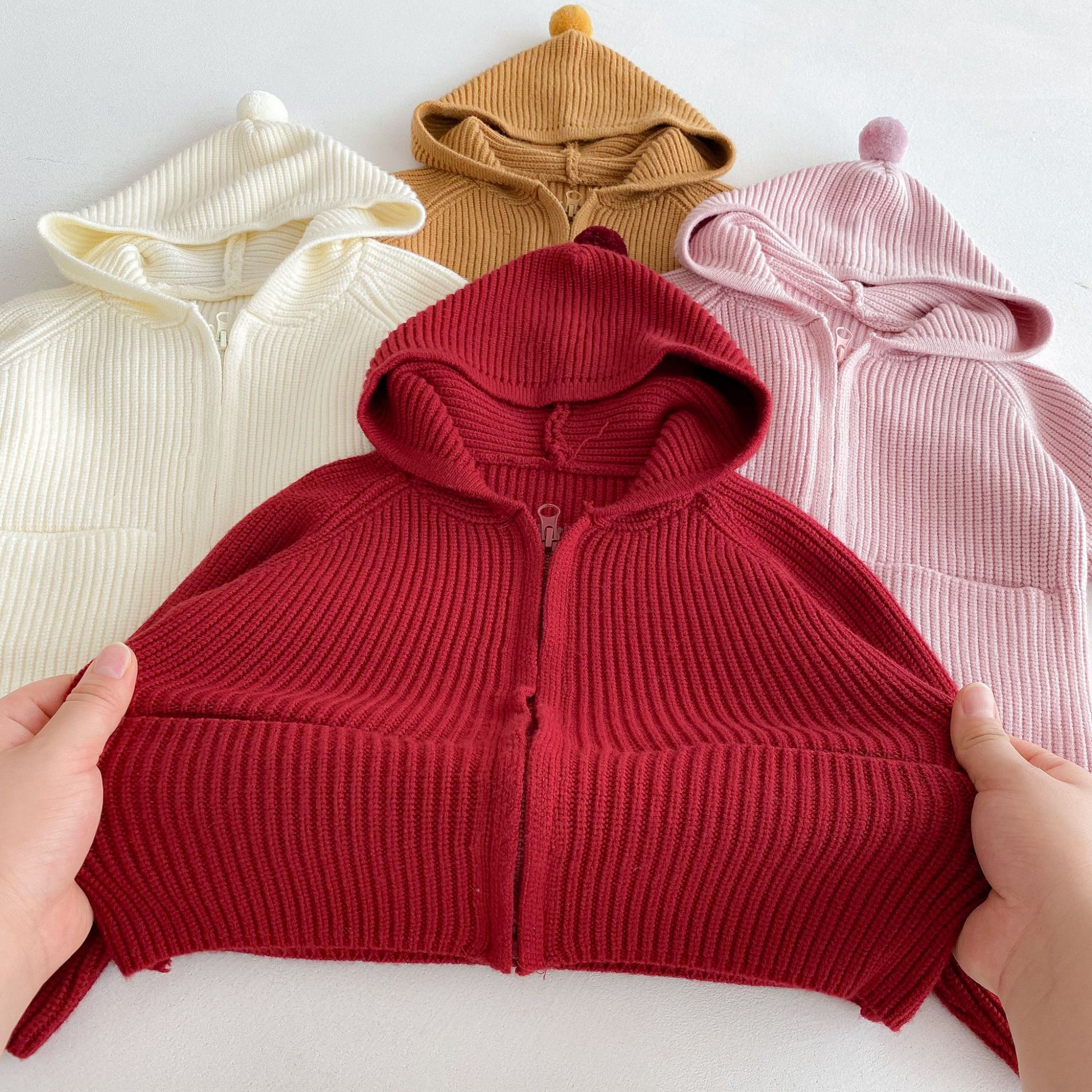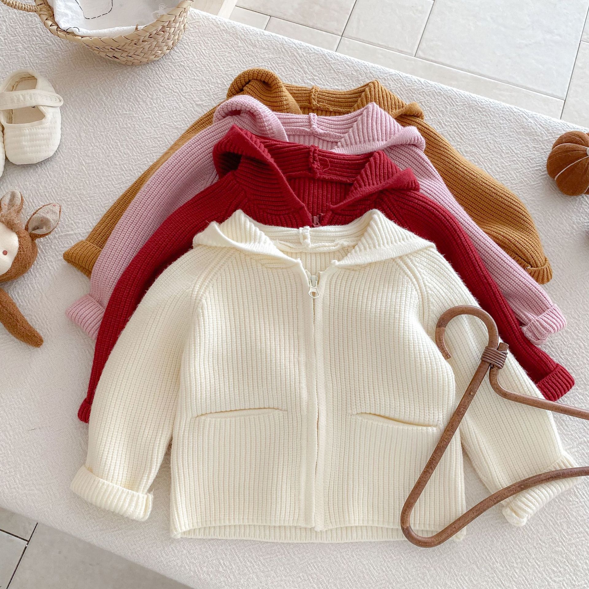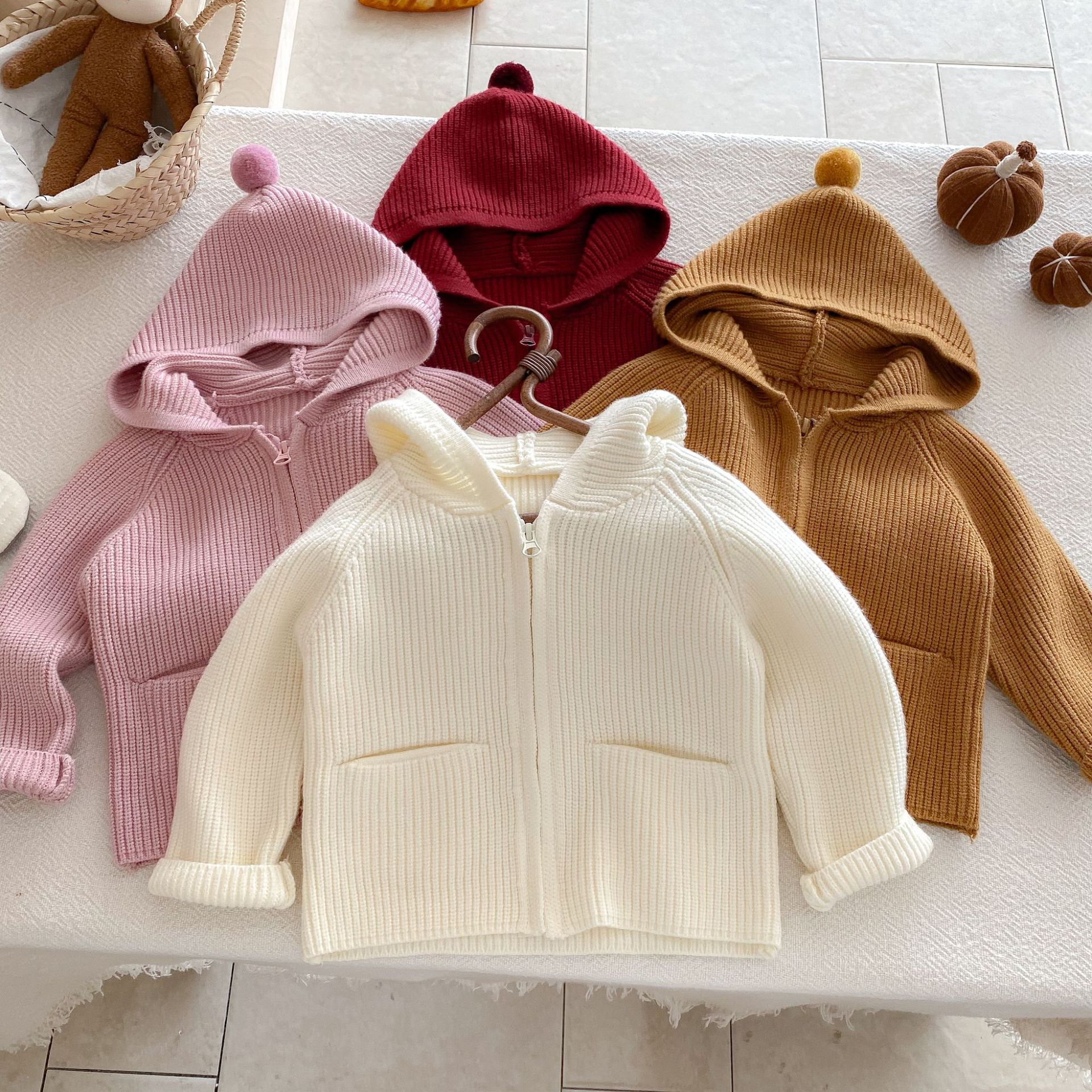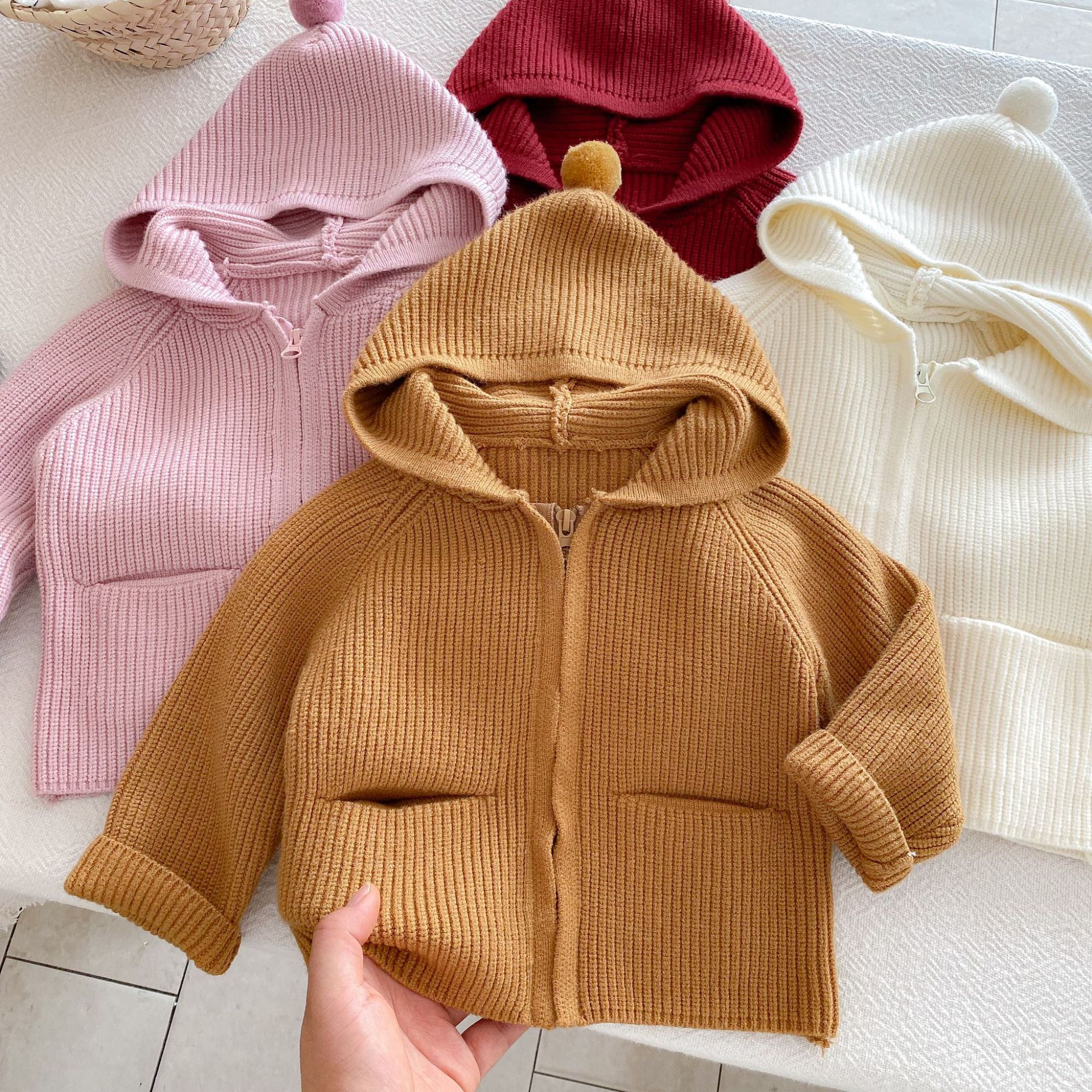 가을 겨울 스타일과 귀여운 따뜻한 유아용 가디건 루즈한 래글런 탑을 위한 여아 단색 후드 스웨터 재킷스토어 가기