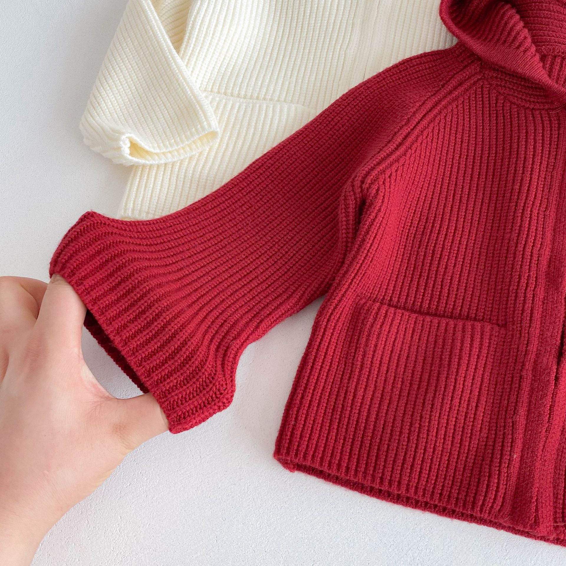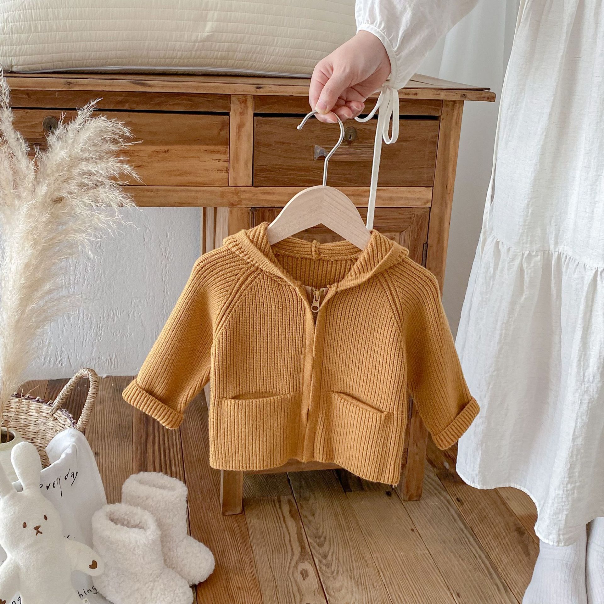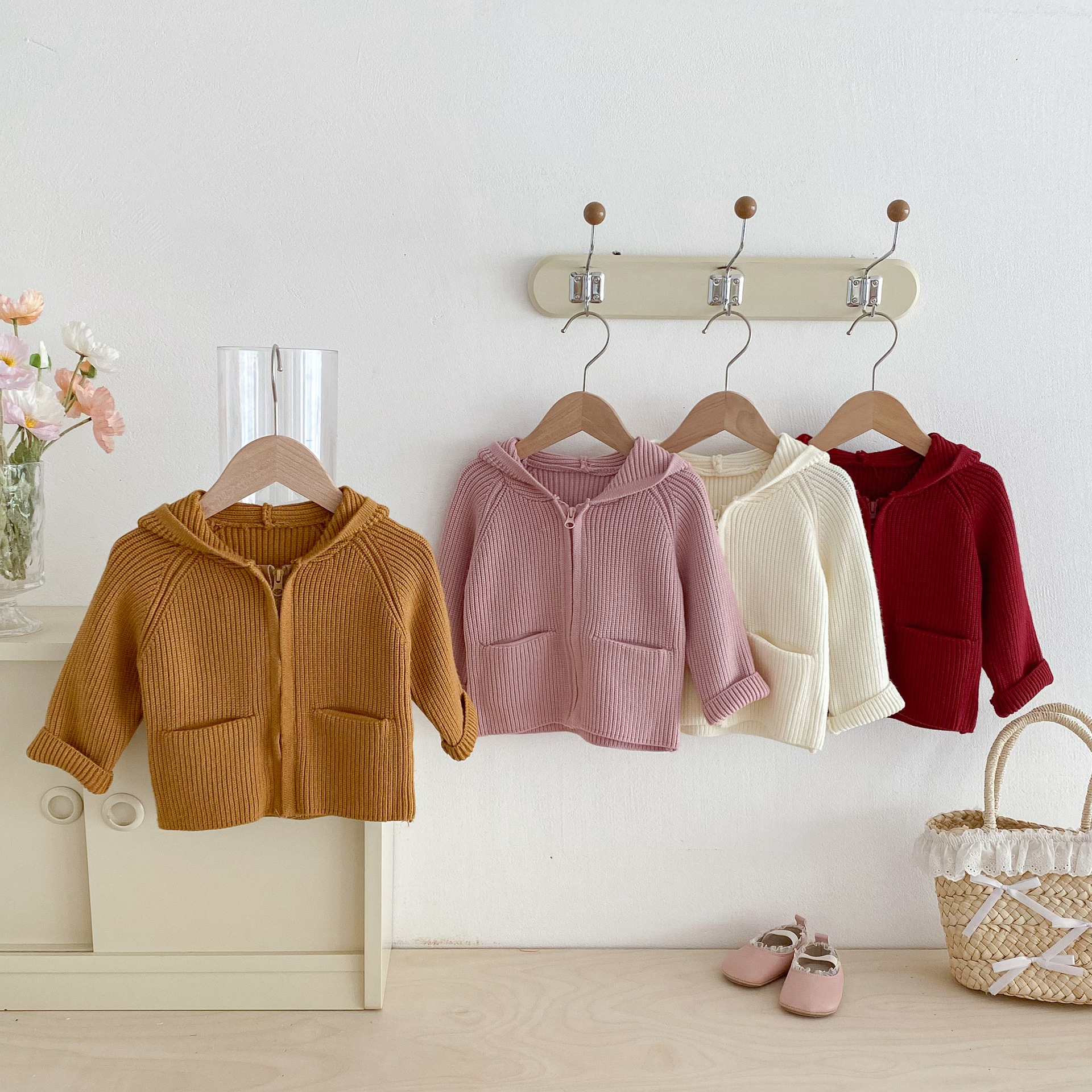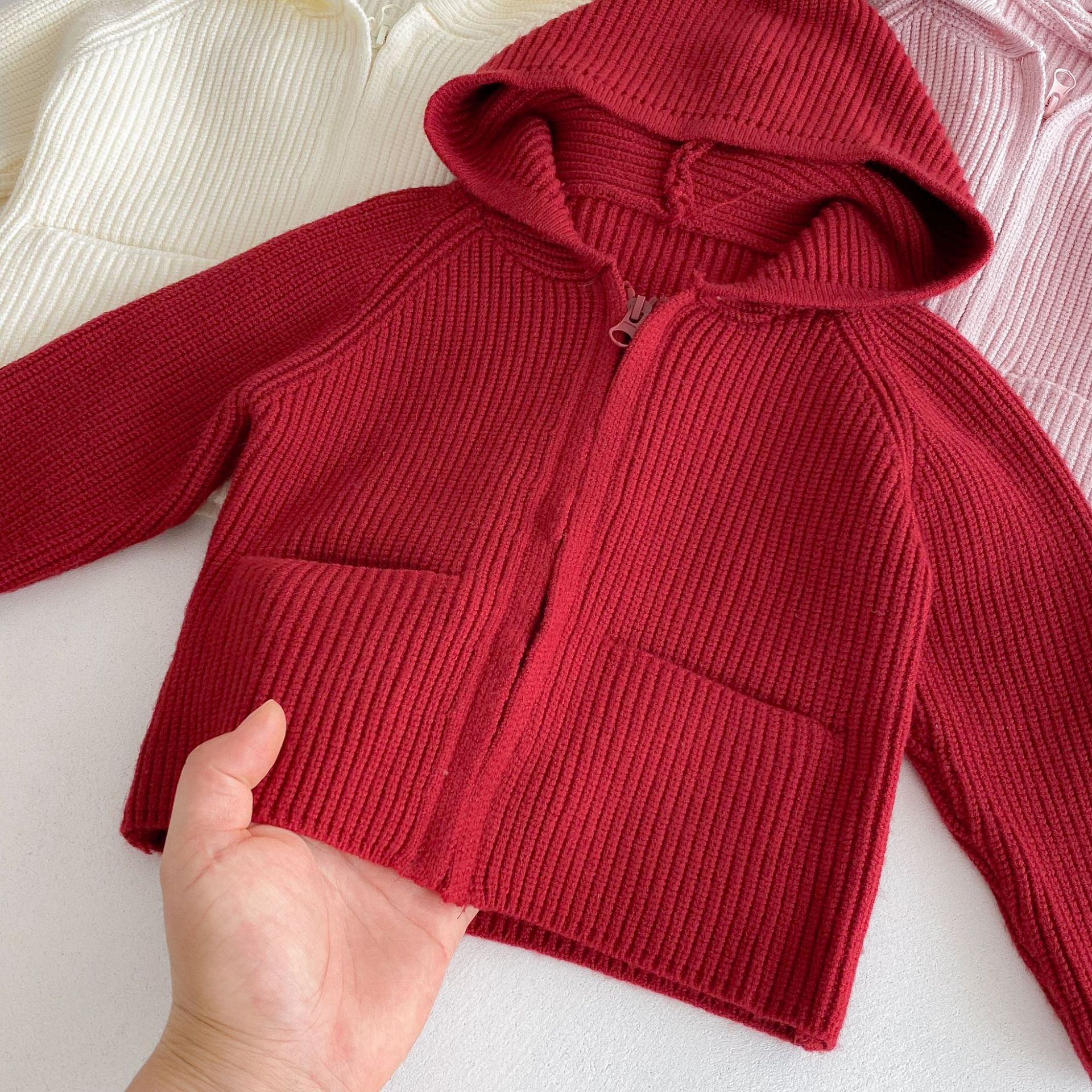 가을 겨울 스타일과 귀여운 따뜻한 유아용 가디건 루즈한 래글런 탑을 위한 여아 단색 후드 스웨터 재킷스토어 가기