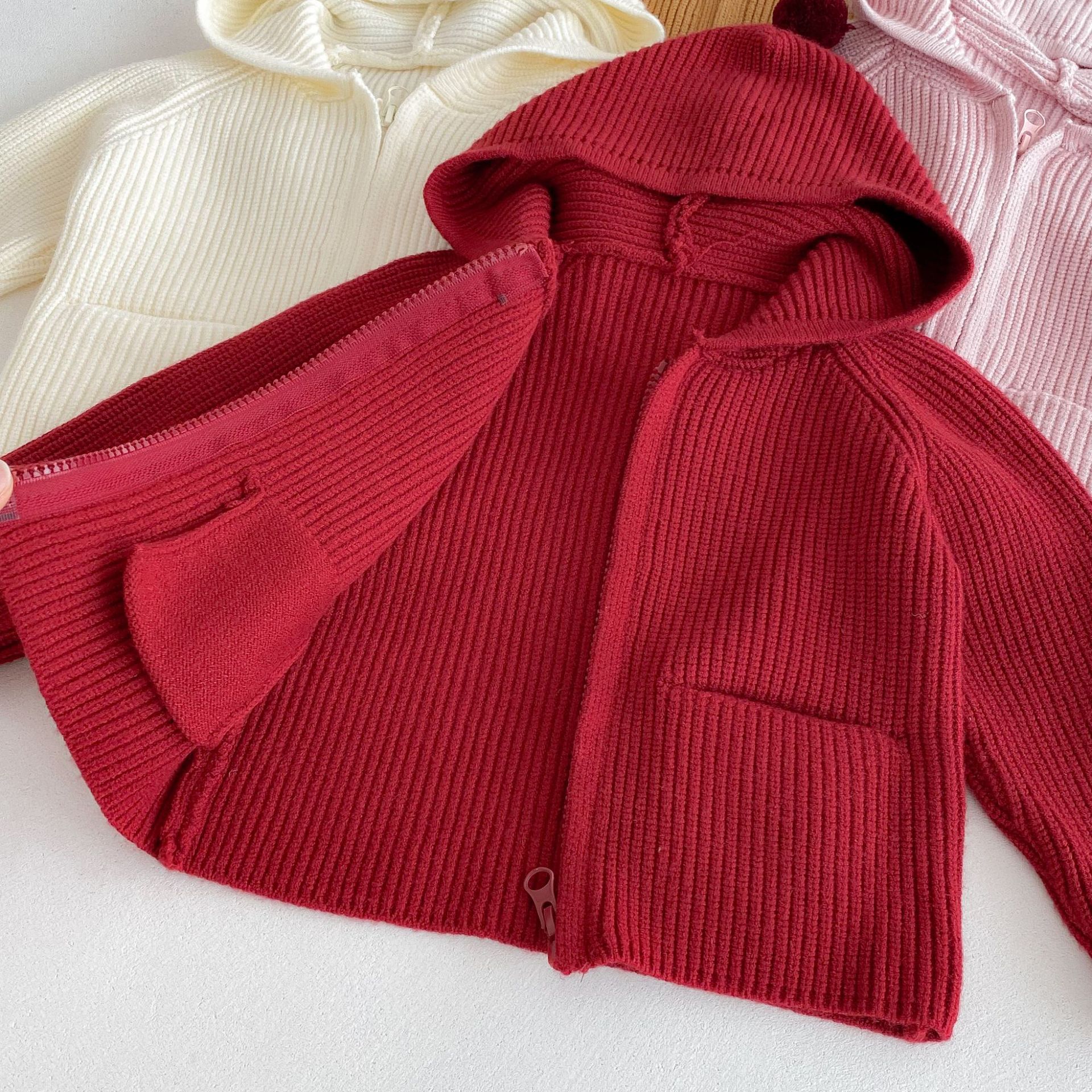 가을 겨울 스타일과 귀여운 따뜻한 유아용 가디건 루즈한 래글런 탑을 위한 여아 단색 후드 스웨터 재킷
