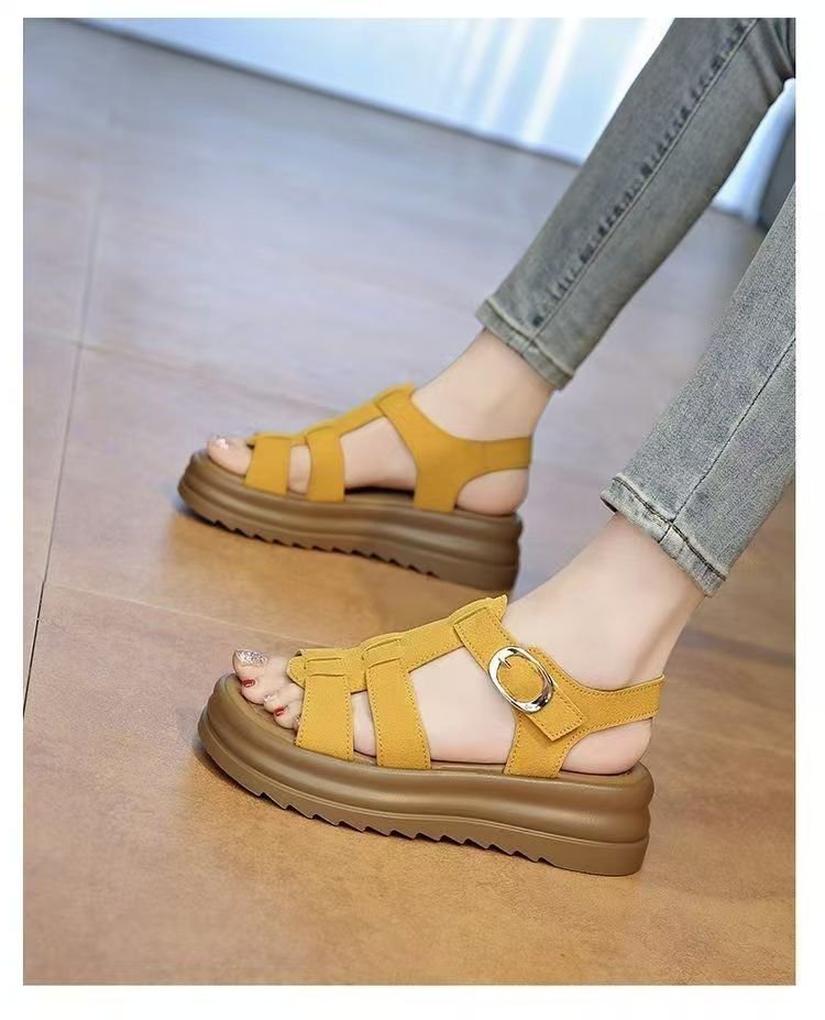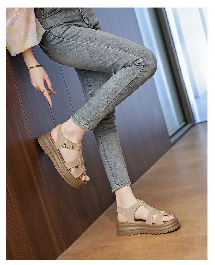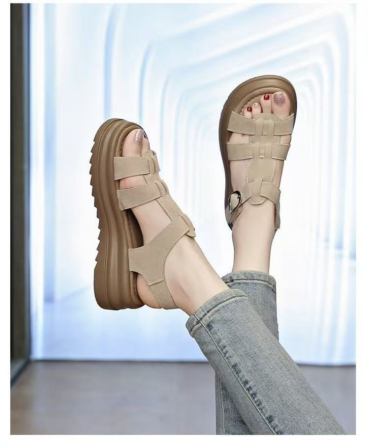 두꺼운 밑창 로마 샌들 여름 스타일 2025 새로운 스타일의 패션 요정 스타일 스커트 부드러운 밑창 비치 신발 여성 샌들스토어 가기