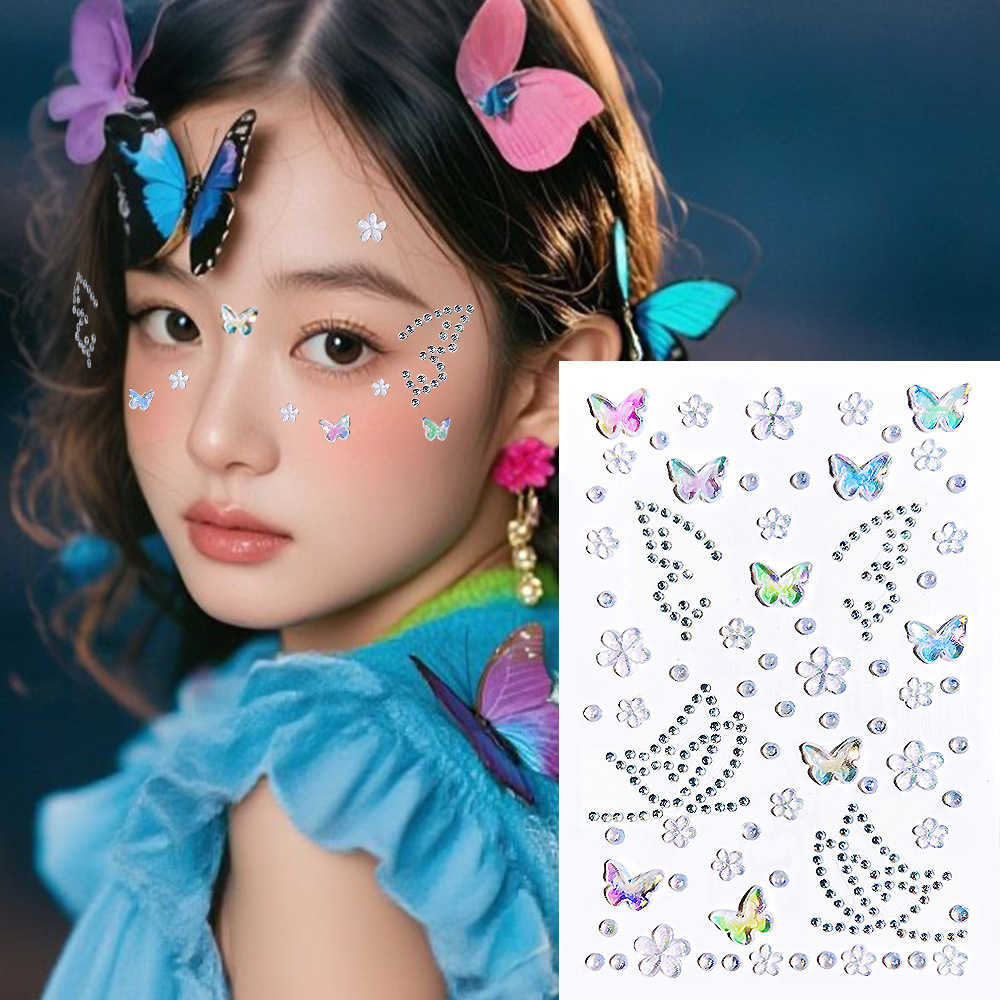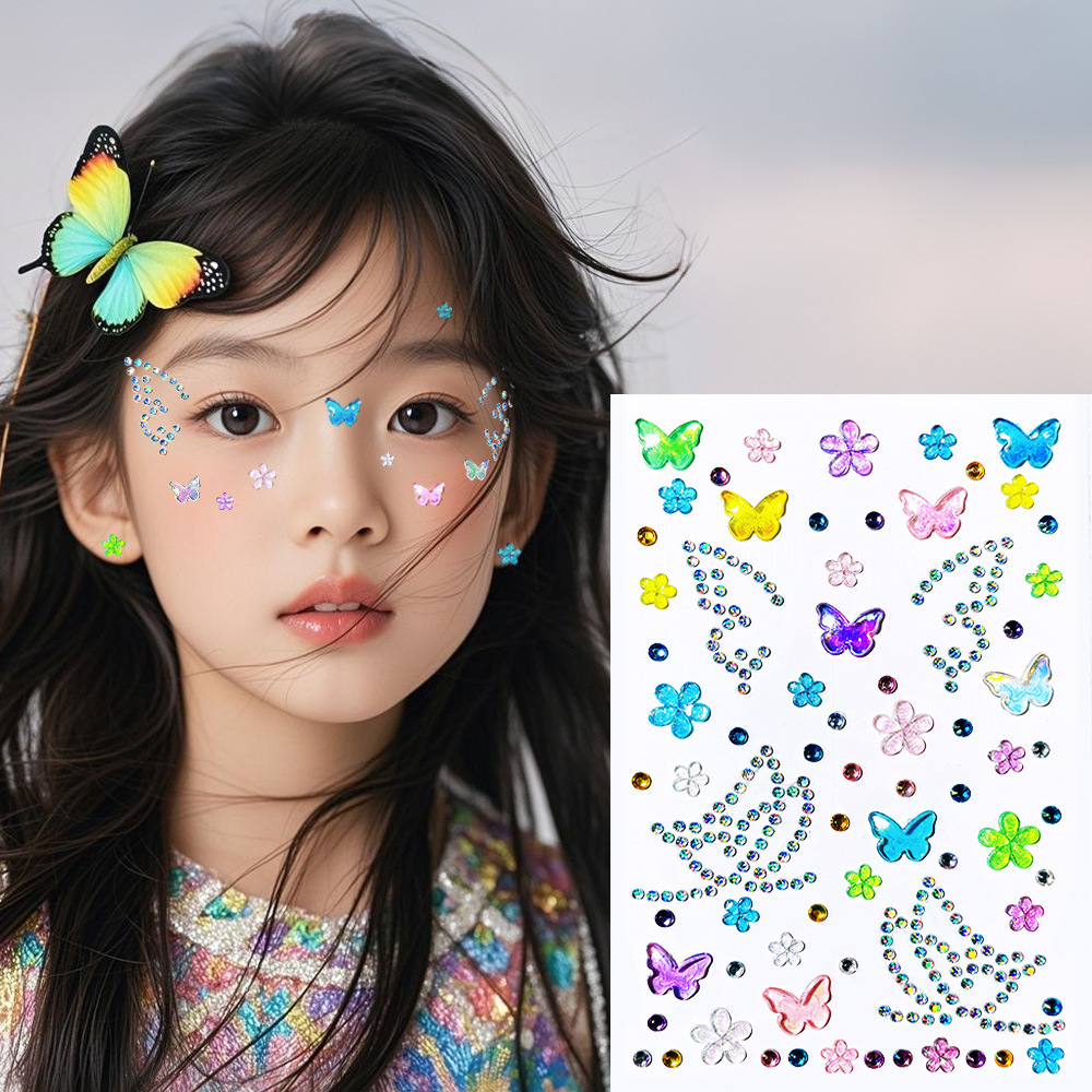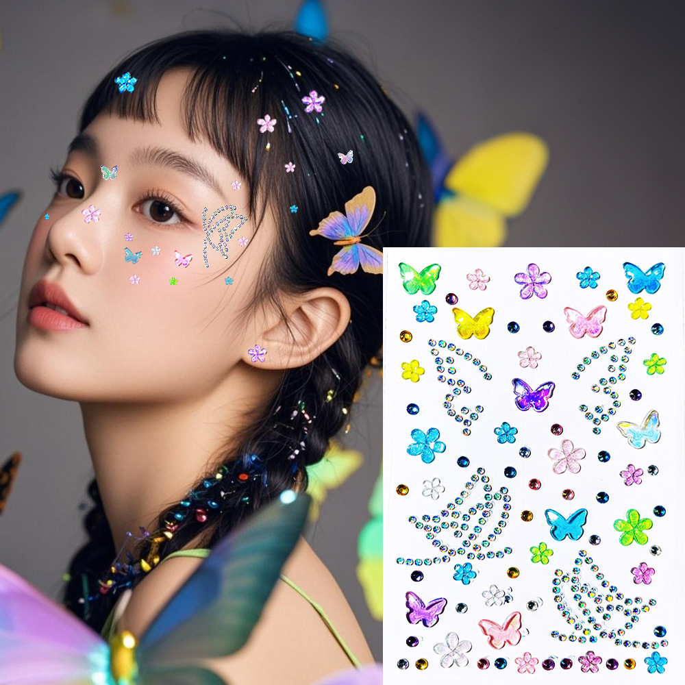 나비 파인 글리터 크리스탈 다이아몬드 스티커, 얼굴에 파인 글리터, 어린이와 소녀, 컬러풀한 방수, 고급 감각, 눈꼬리, 쇄골, 컬러풀스토어 가기