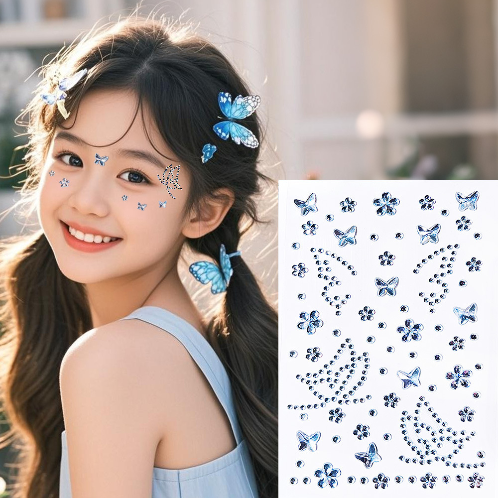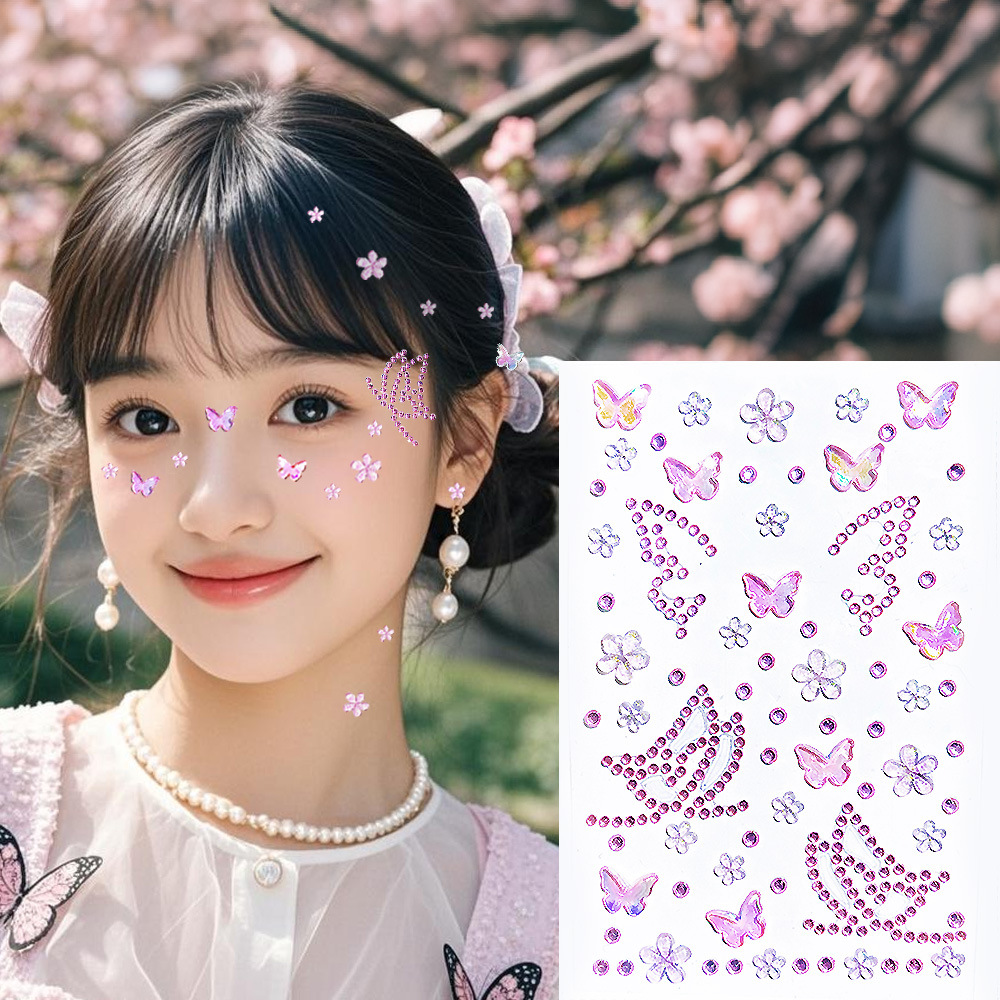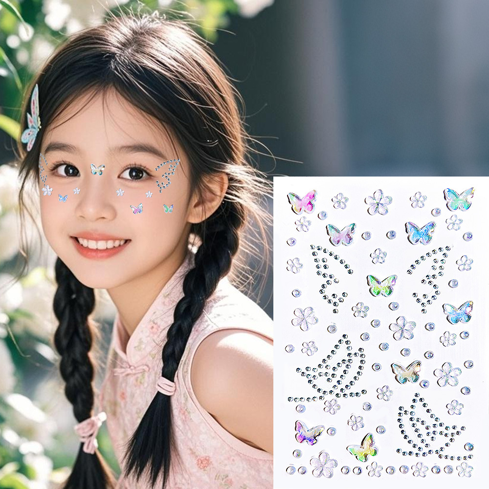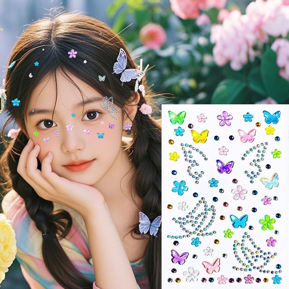 나비 파인 글리터 크리스탈 다이아몬드 스티커, 얼굴에 파인 글리터, 어린이와 소녀, 컬러풀한 방수, 고급 감각, 눈꼬리, 쇄골, 컬러풀스토어 가기