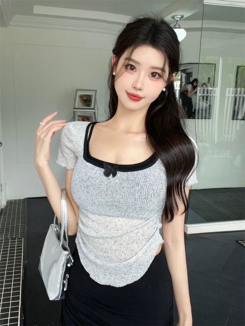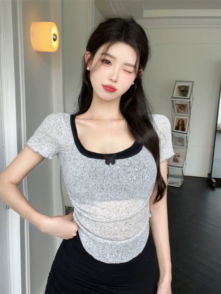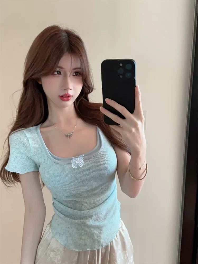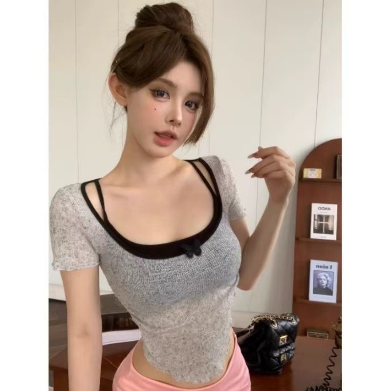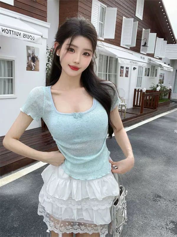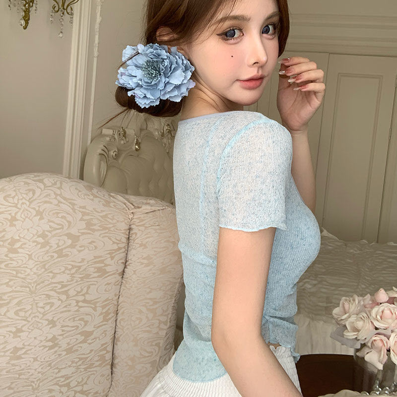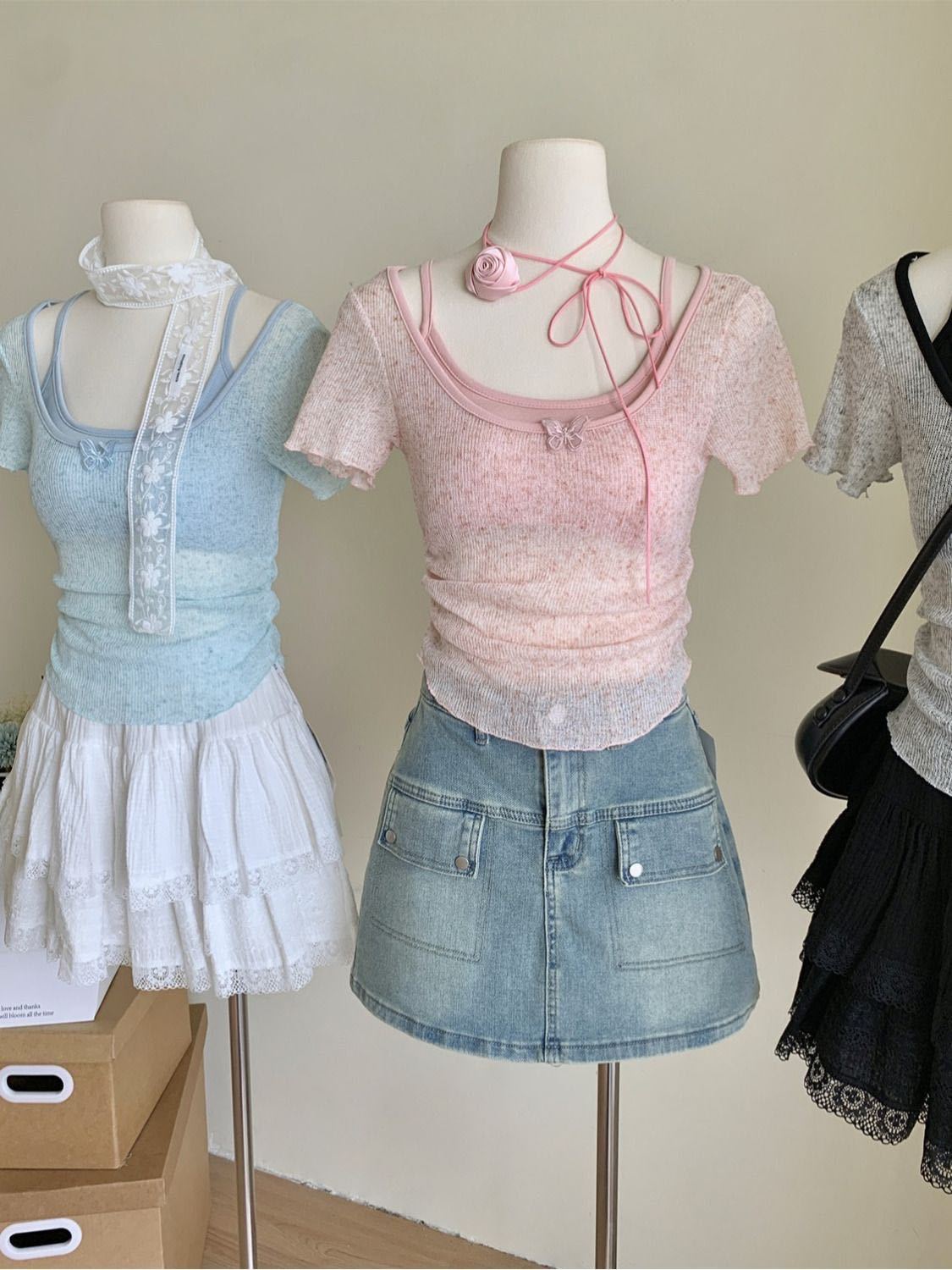 66011 # 퓨어 러스터 얇은 살짝 시스루 반팔 티셔츠 여름 패딩 캐미솔 탑 레이어드 투피스 세트스토어 가기
