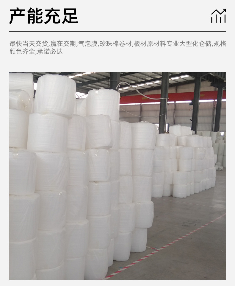【关于规格】珍珠棉卷棉厚度:0.5/1/2/3/5/8/10(毫米) 分切宽度:20-150(厘米)。