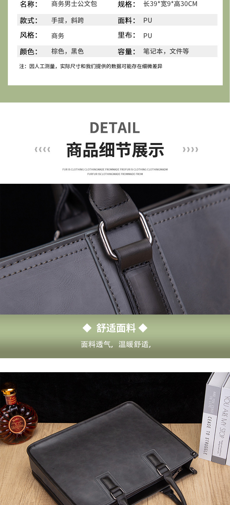 크로스보더 15inch PU 방수 남성 서류가방 크로스백 비즈니스 노트북 가방 척추 보호 남성 가방 경량 척추 보호스토어 가기