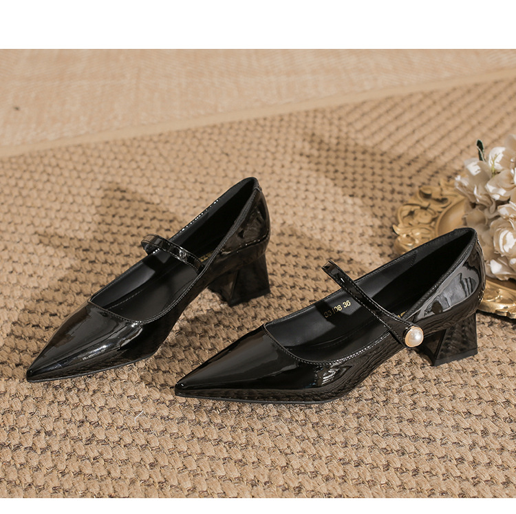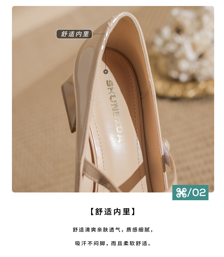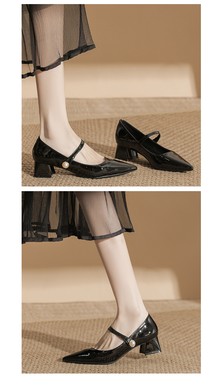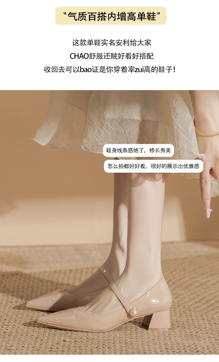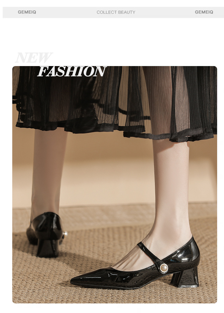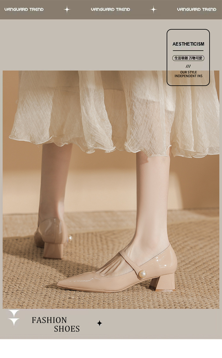 프랑스의 아름다운 메리 제인 여성 신발 2025 새로운 작은 향기 신발 두꺼운 굽 하이힐 여성용 얕은 입 뾰족한 신발스토어 가기
