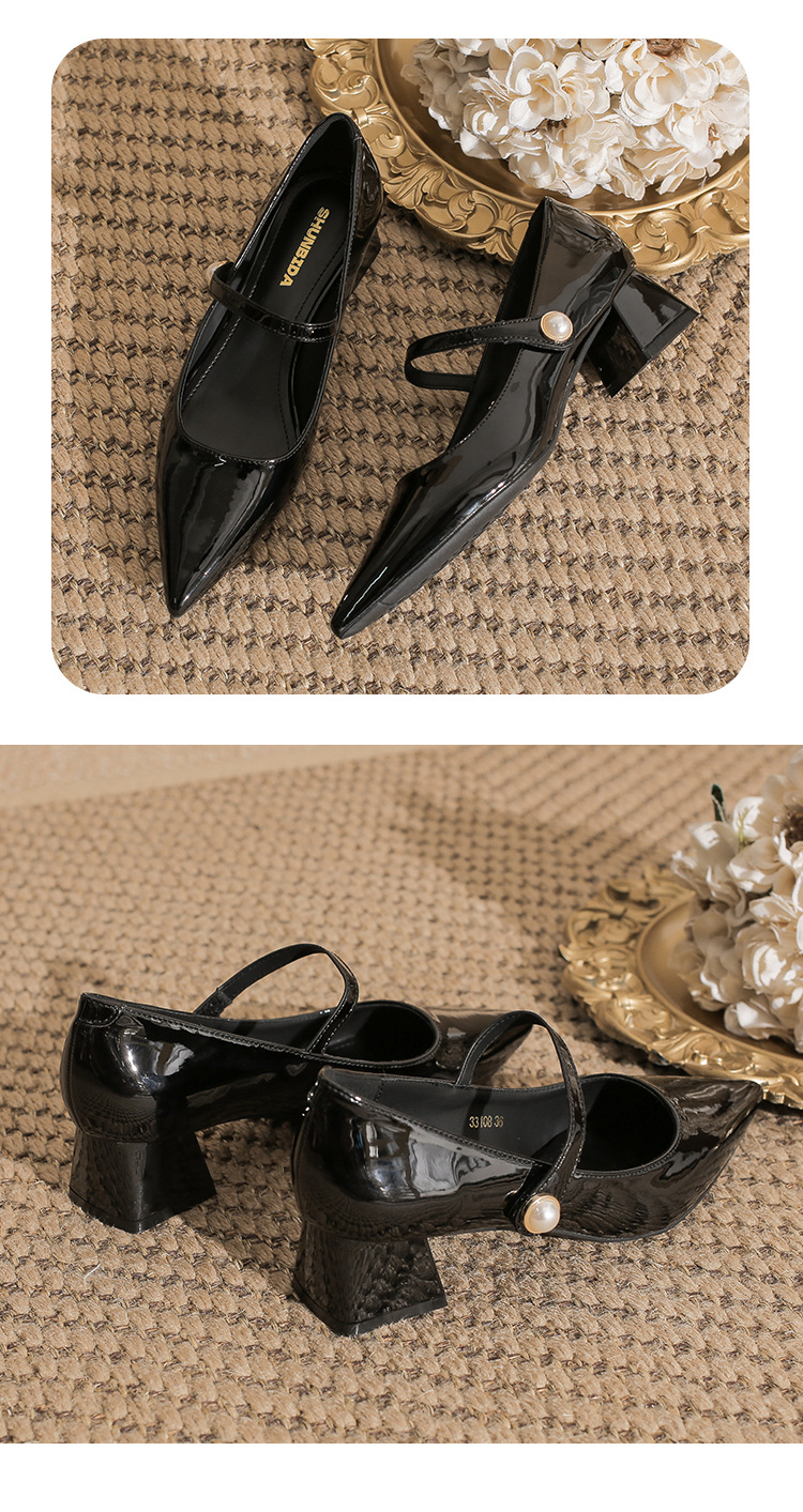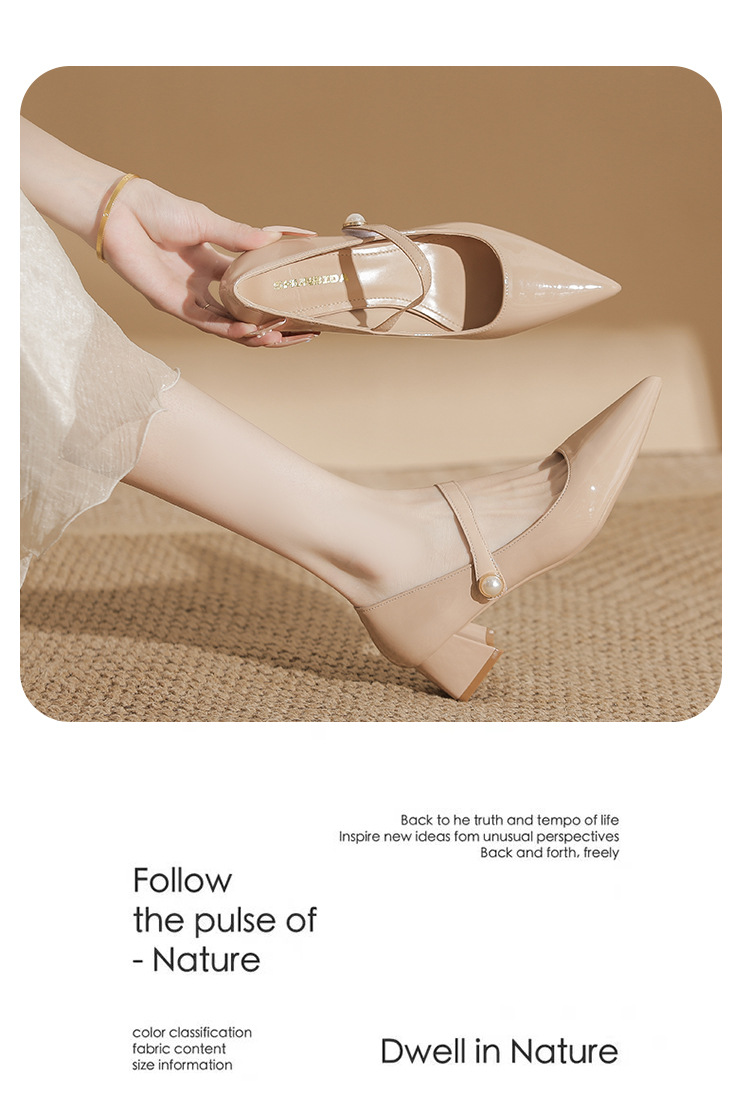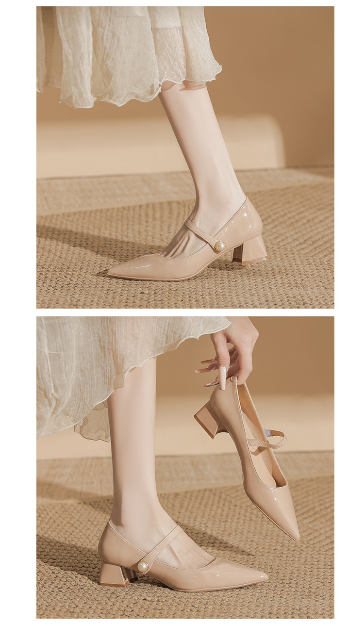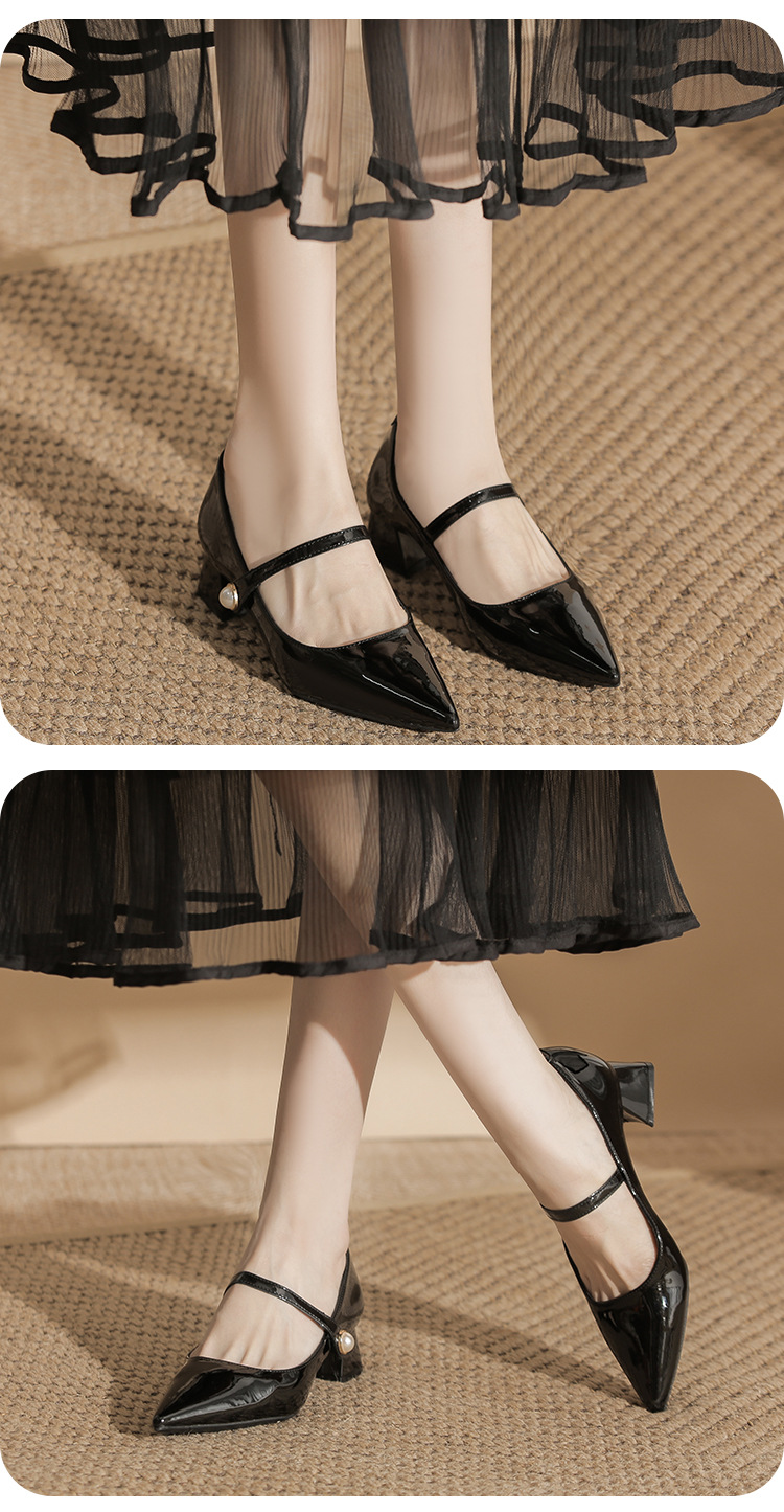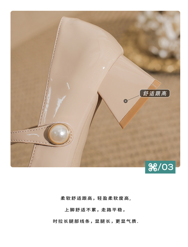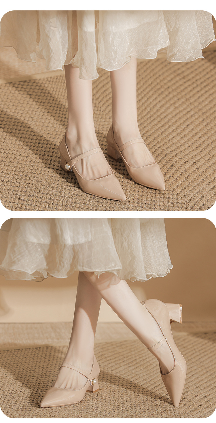 프랑스의 아름다운 메리 제인 여성 신발 2025 새로운 작은 향기 신발 두꺼운 굽 하이힐 여성용 얕은 입 뾰족한 신발스토어 가기