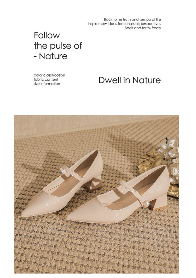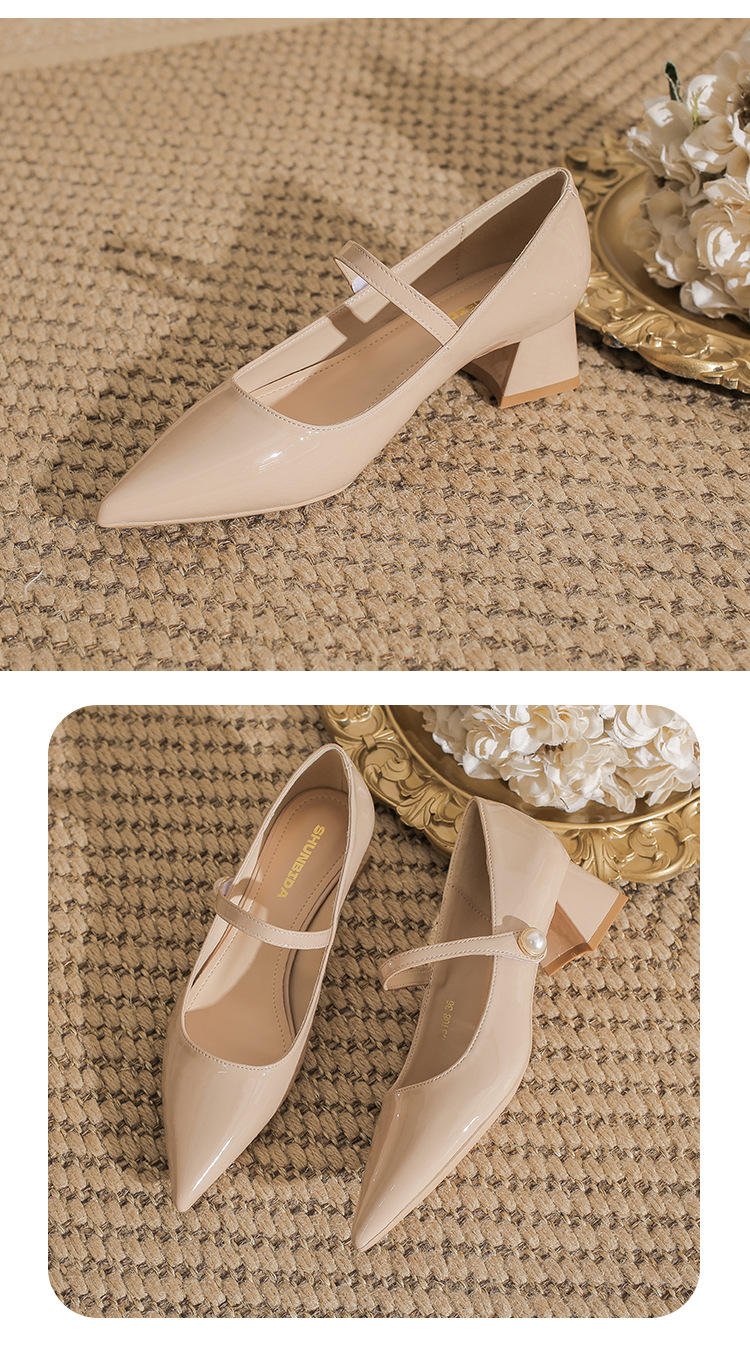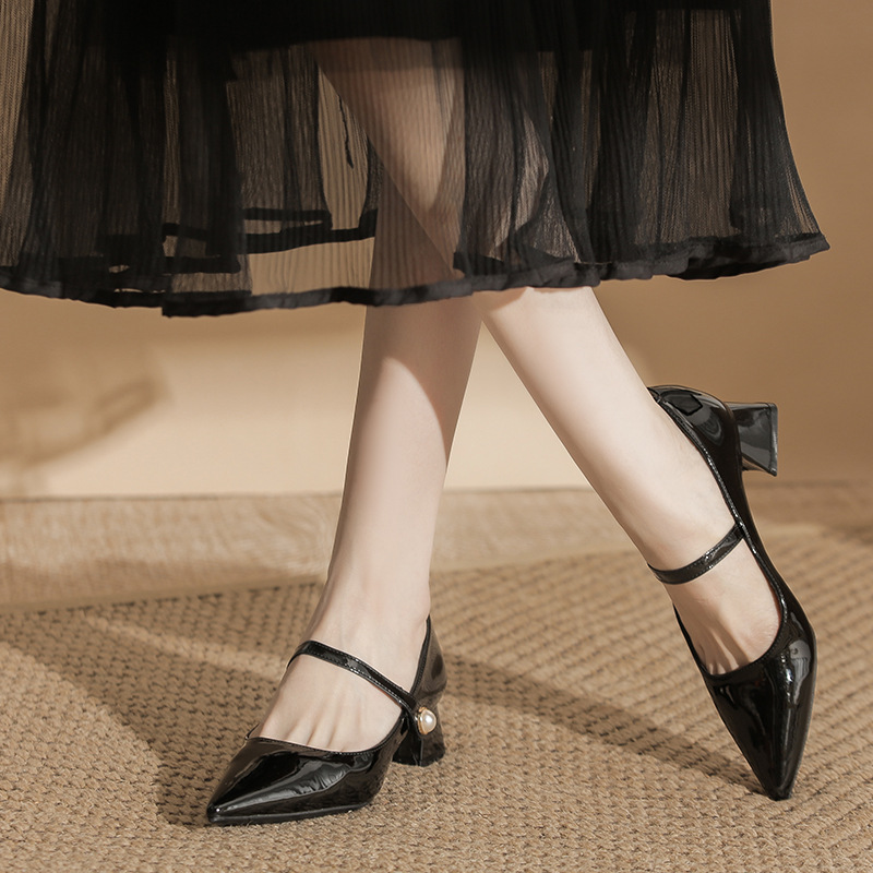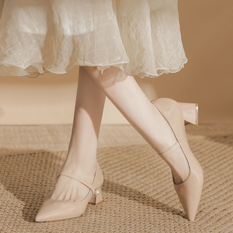 프랑스의 아름다운 메리 제인 여성 신발 2025 새로운 작은 향기 신발 두꺼운 굽 하이힐 여성용 얕은 입 뾰족한 신발