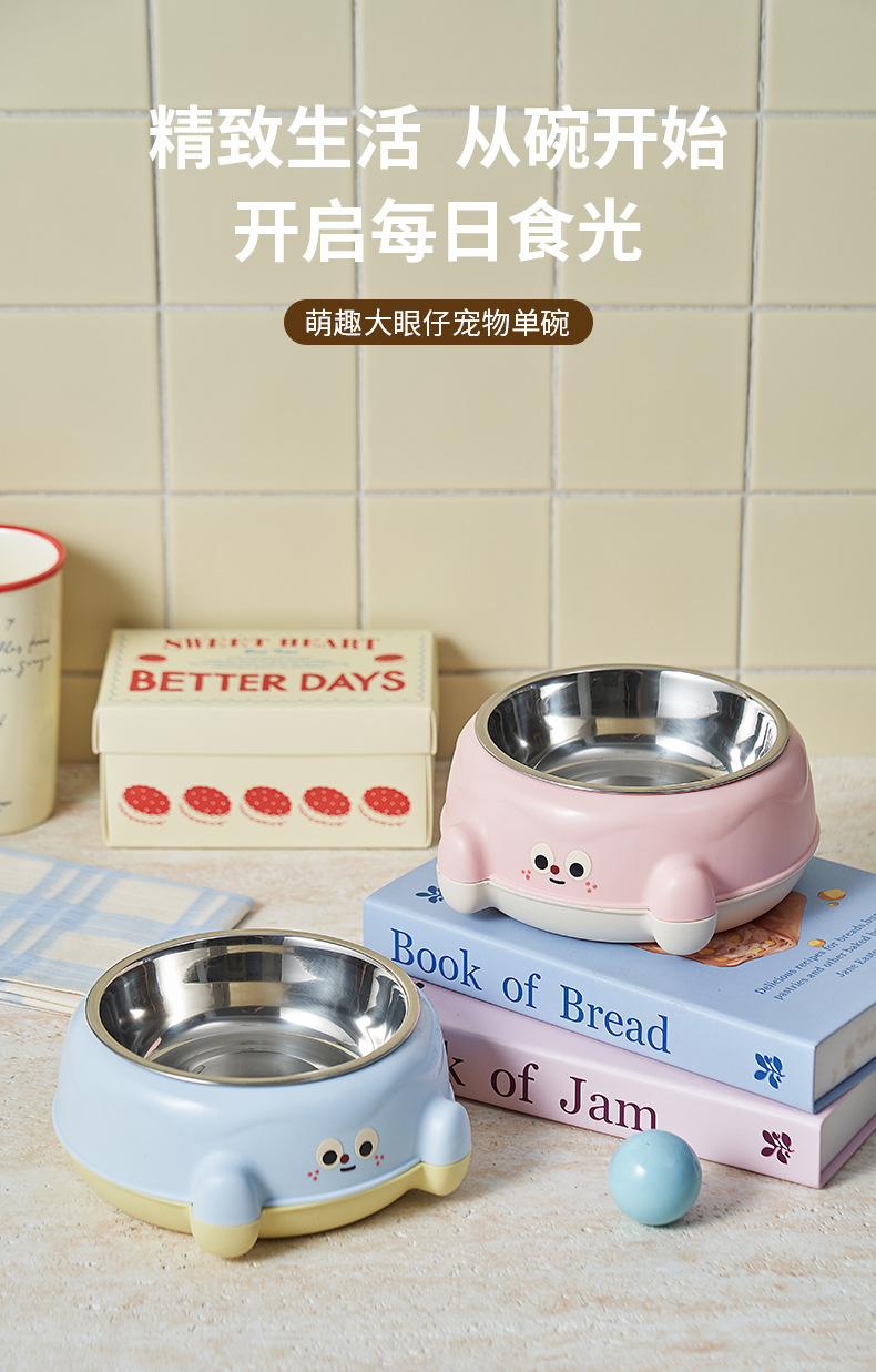 • 파란색 귀여운 큰 눈 단일 그릇 + 스테인레스 스틸 그릇
