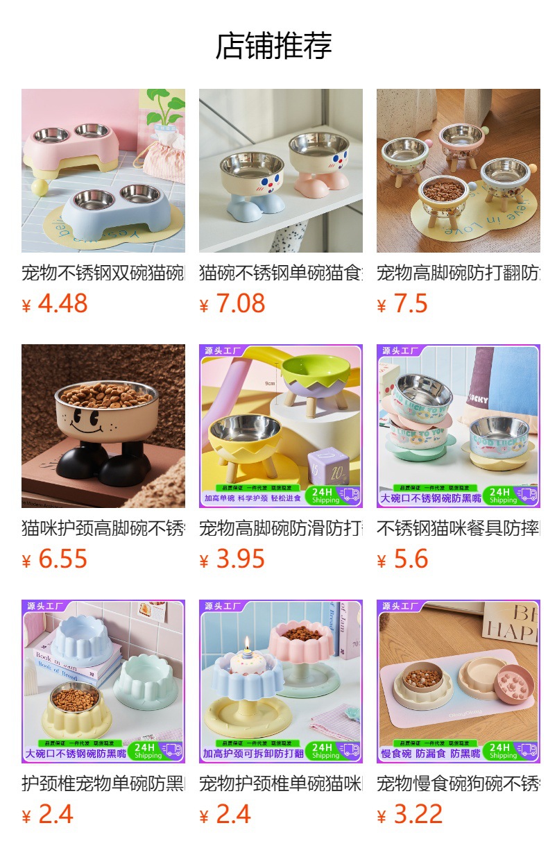 애완동물 스테인리스 이중그릇, 고양이 식기, 강아지 식기, 미끄럼 방지, 넘어짐 방지 애완동물 식기스토어 가기