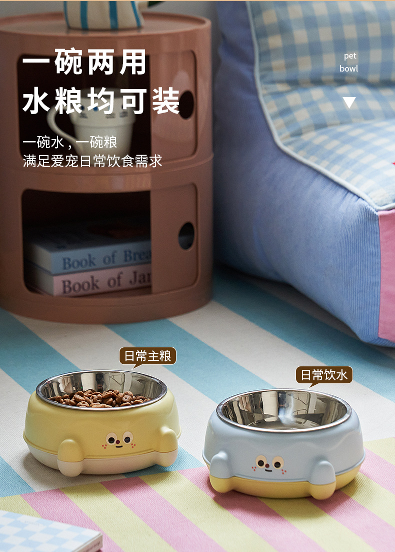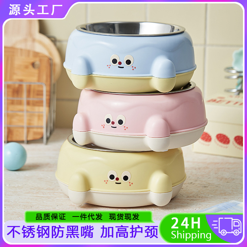 • 노란색 귀여운 큰 눈 단일 그릇 + 스테인레스 스틸 그릇