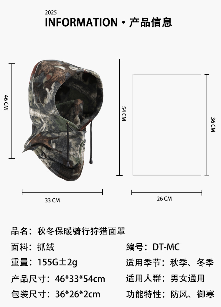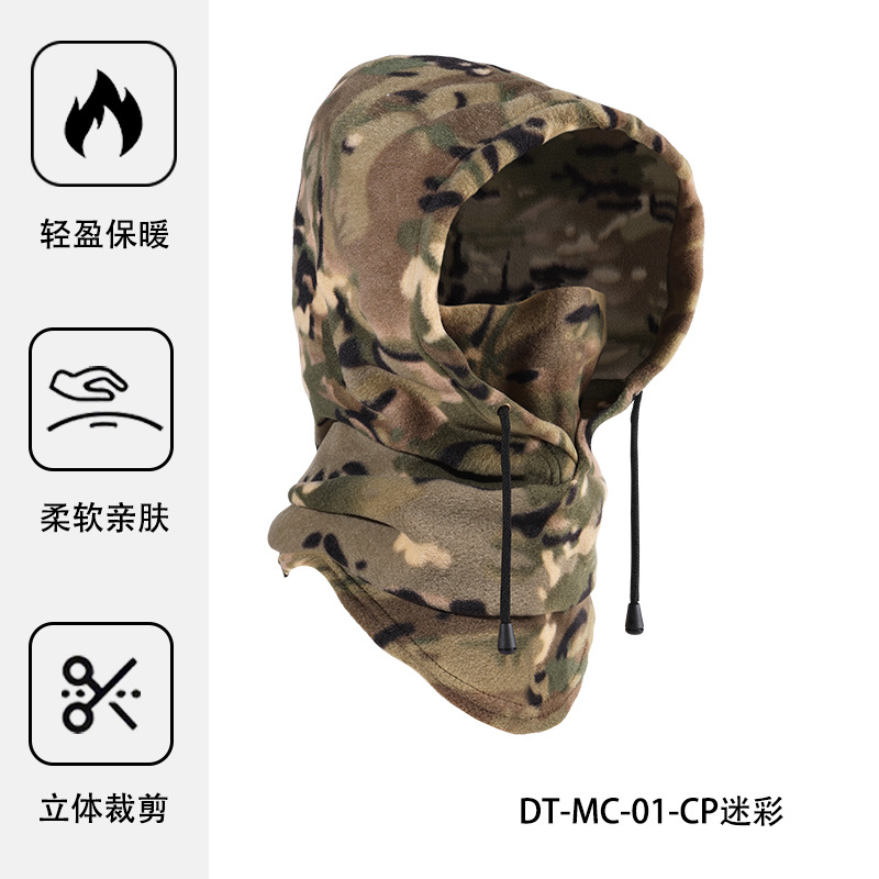 크로스보더 사이클링 모자, 방풍 모자, 야외 스포츠 넥 워머, 방한 두꺼운 스키 후드 마스크, 위장 플리스 모자