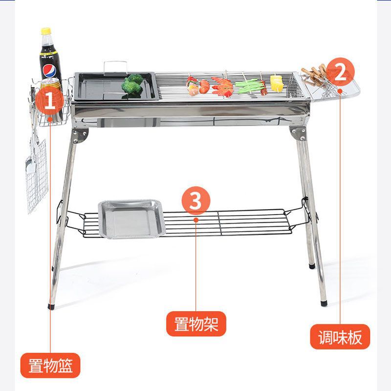 완전한 바베큐 도구 세트 스테인레스 스틸 야외 휴대용 접이식 가정용 바베큐 그릴 야외 대형 숯불 바베큐 스토브스토어 가기