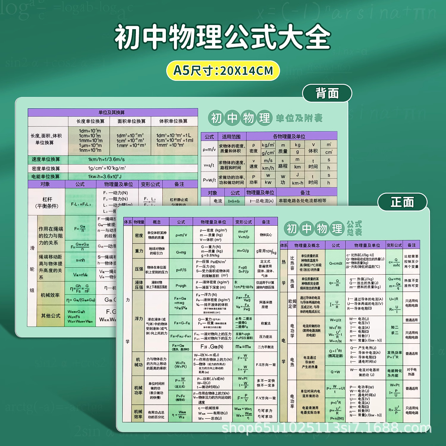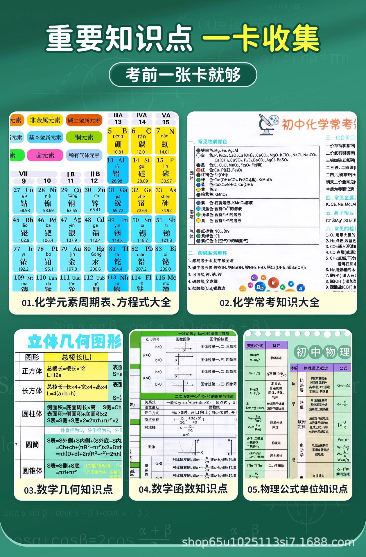 중학교 화학 원소 주기율표 수학 물리학 지식 화학 방정식 전체 수학 및 물리학 공식 카드 도매