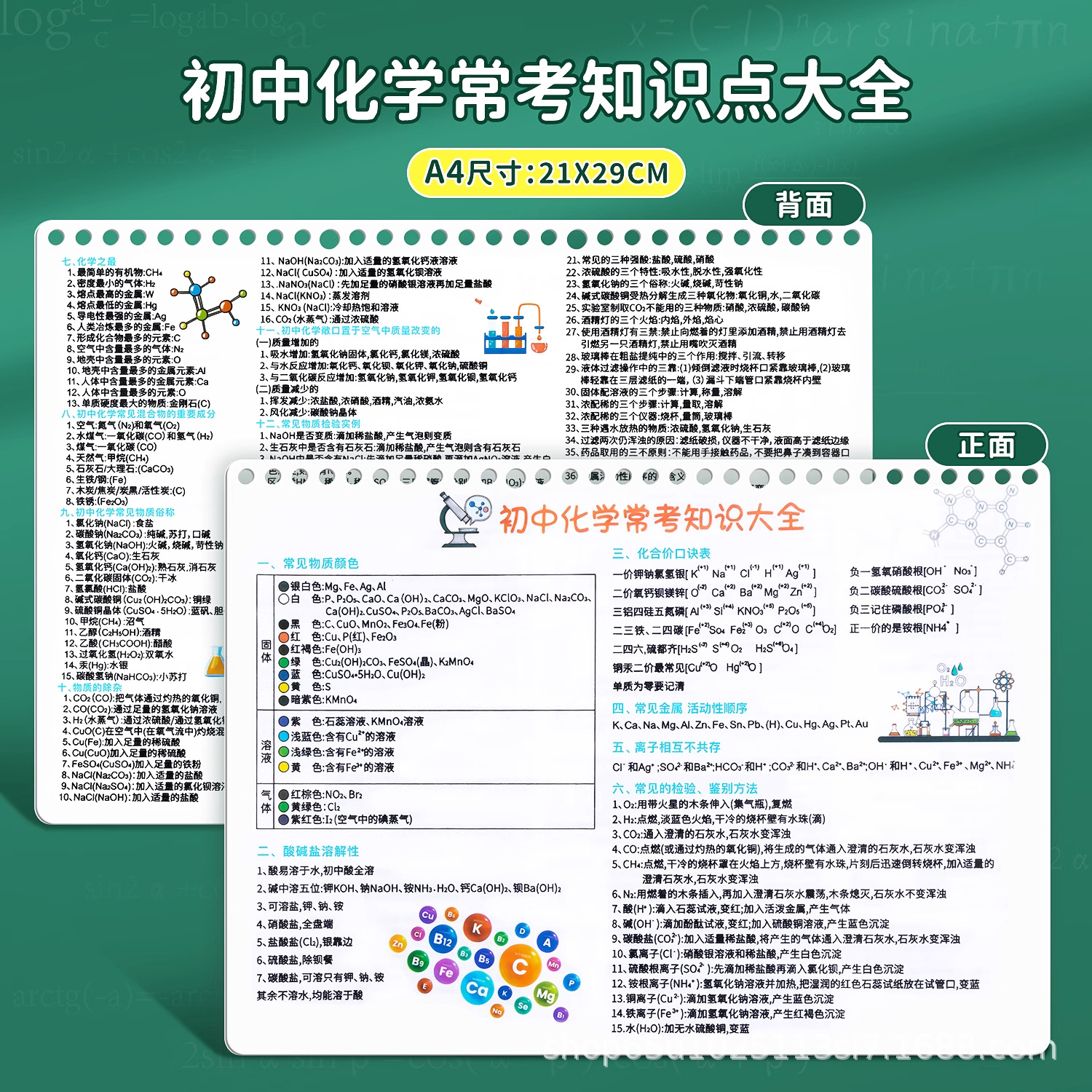 • A4 중학교 화학 원소 주기율표 + 일반적인 시험 지식 포인트