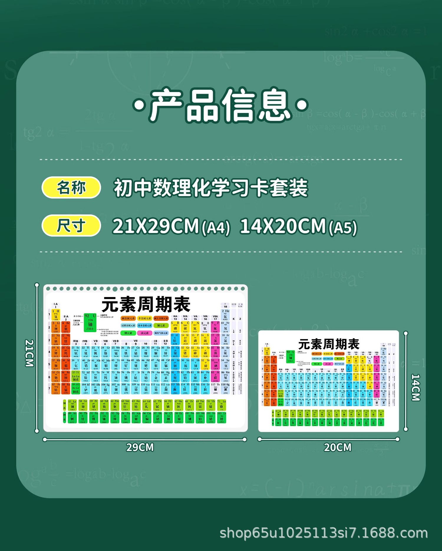중학교 화학 원소 주기율표 수학 물리학 지식 화학 방정식 전체 수학 및 물리학 공식 카드 도매스토어 가기