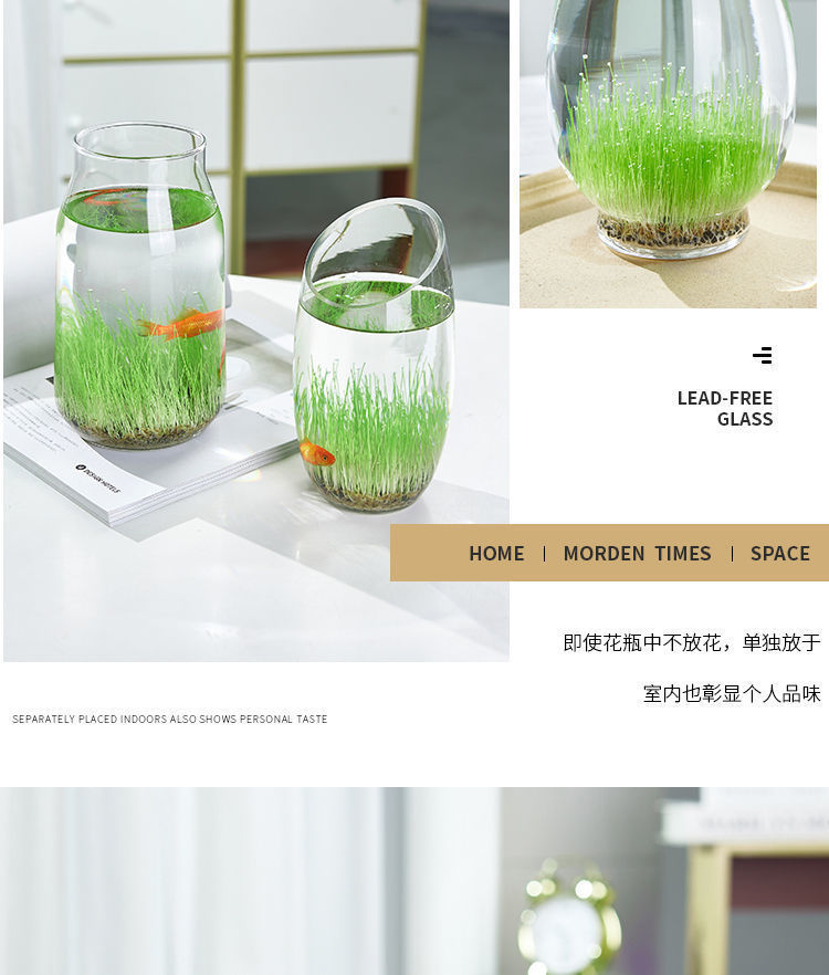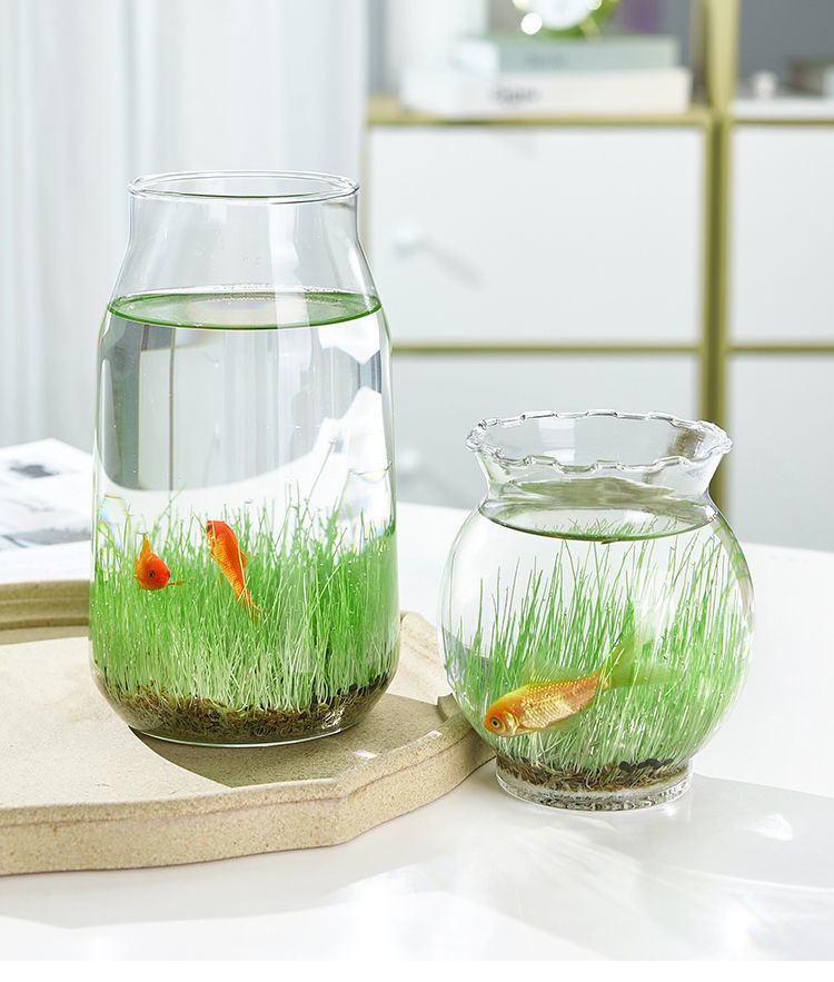 홈 DIY 창조적 인 생태 작은 물고기 탱크 유리 꽃병 투명 수경 식물 화분에 심은 수생 식물 사계절 마이크로 풍경스토어 가기