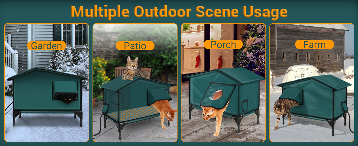 국경 간 인기 판매 야외 고양이 둥지, 탈착식 및 높이 조절 가능, 가열 패드가 있는 방수 고양이 집, 공장 직접 판매, 맞춤형 가능