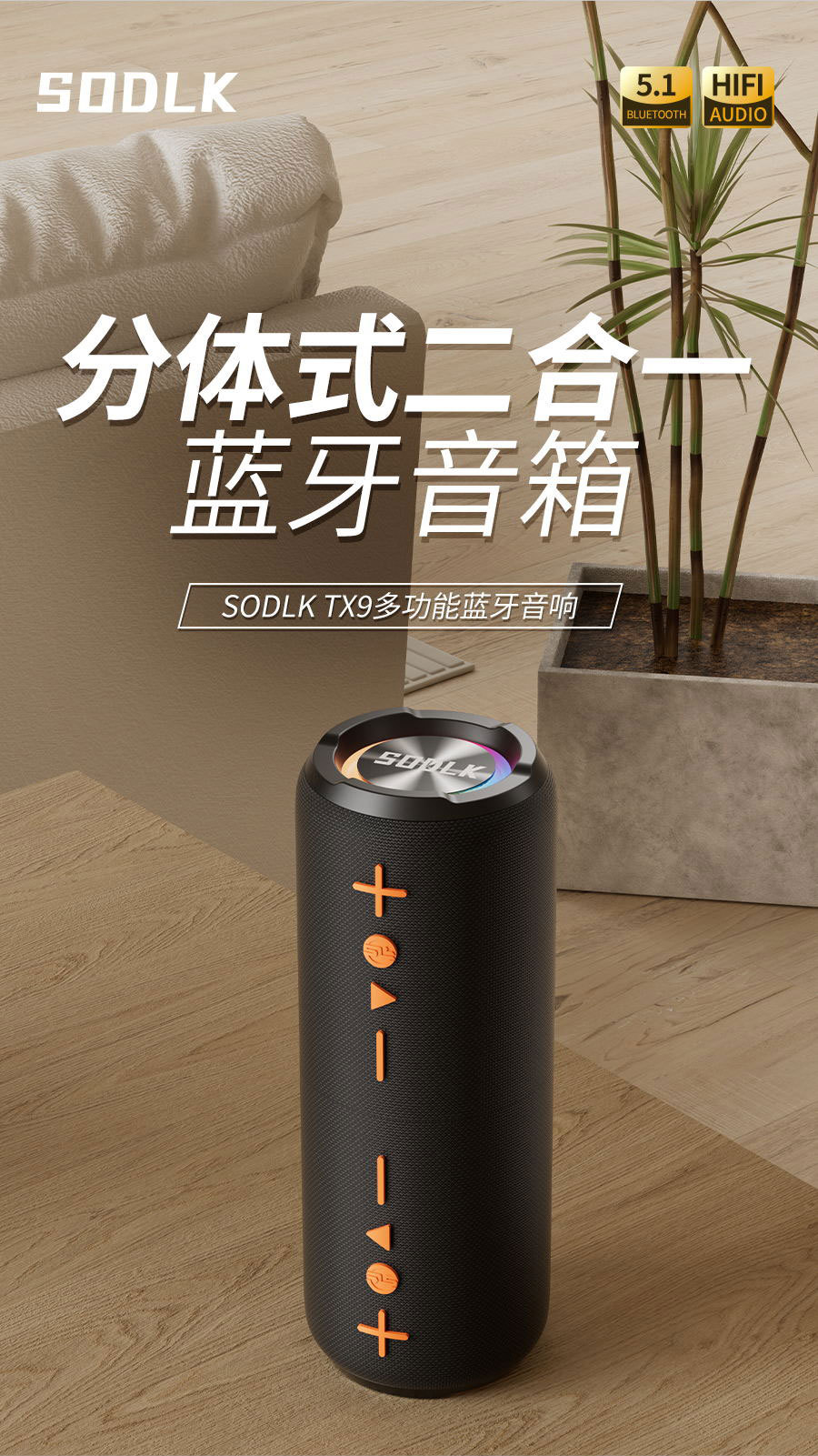 휴대용 투인원 분리형 오디오 분리형 실린더 블루투스 스피커 국경 간 인기 컬러풀 서브우퍼 스피커스토어 가기