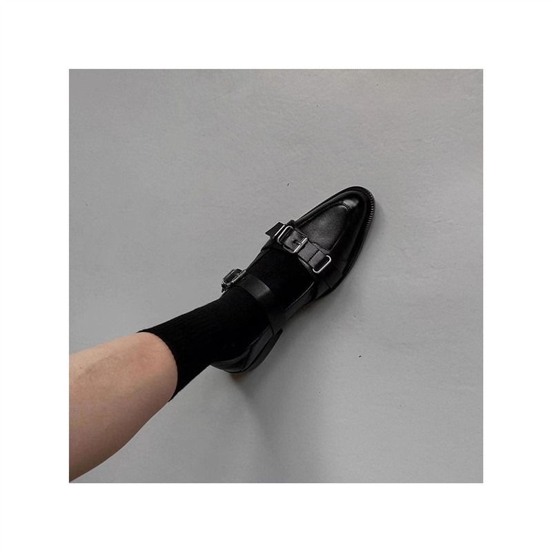 2025년 여름 새로운 다크 펑크 스타일 가죽 신발 여성용 검은색 신발