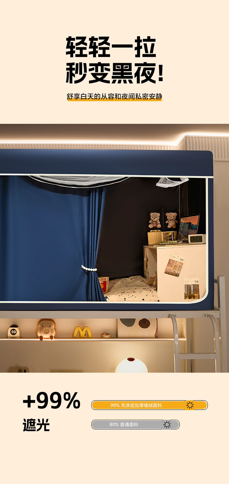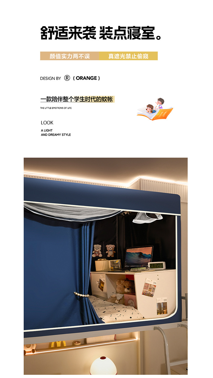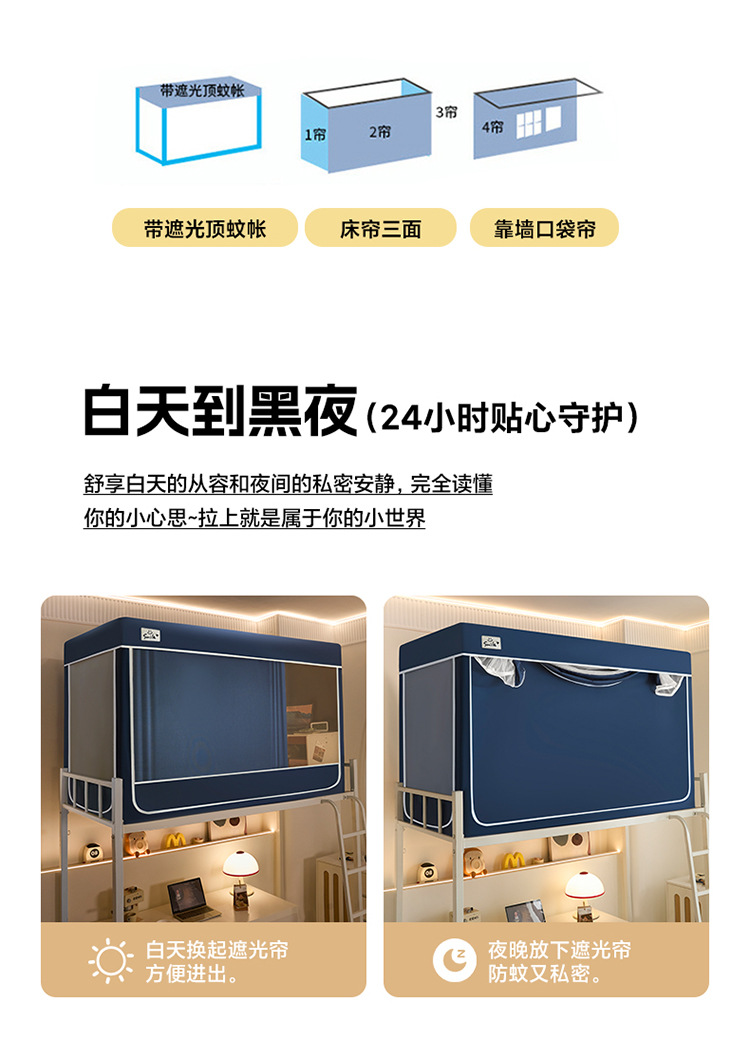 2025 새로운 클래스 A 플록 5면 강력한 차광 이층 침대 학생 모기장 0.8m 0.9m 개인 정보 보호 침대 커튼스토어 가기