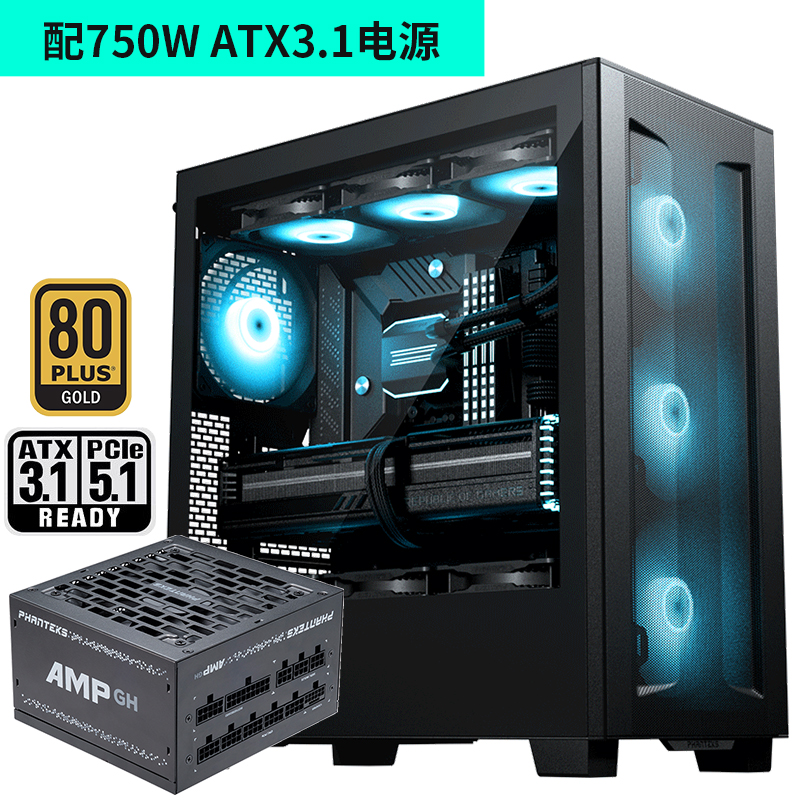• XT523 검정색 비측면 투명 섀시 + 750W ATX3.1 금메달 전원 공급 장치
