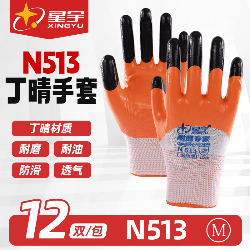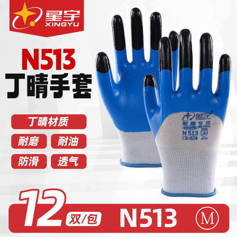 Xingyu N513 니트릴 보호 장갑 내마모성, 내유성, 미끄럼 방지, 완전히 걸린 작업장 건설 현장 작업 절연 노동 보호 장갑스토어 가기