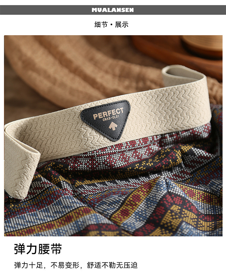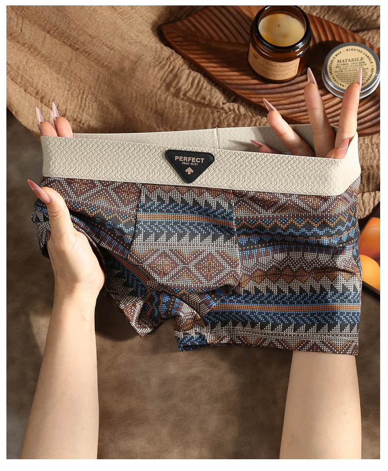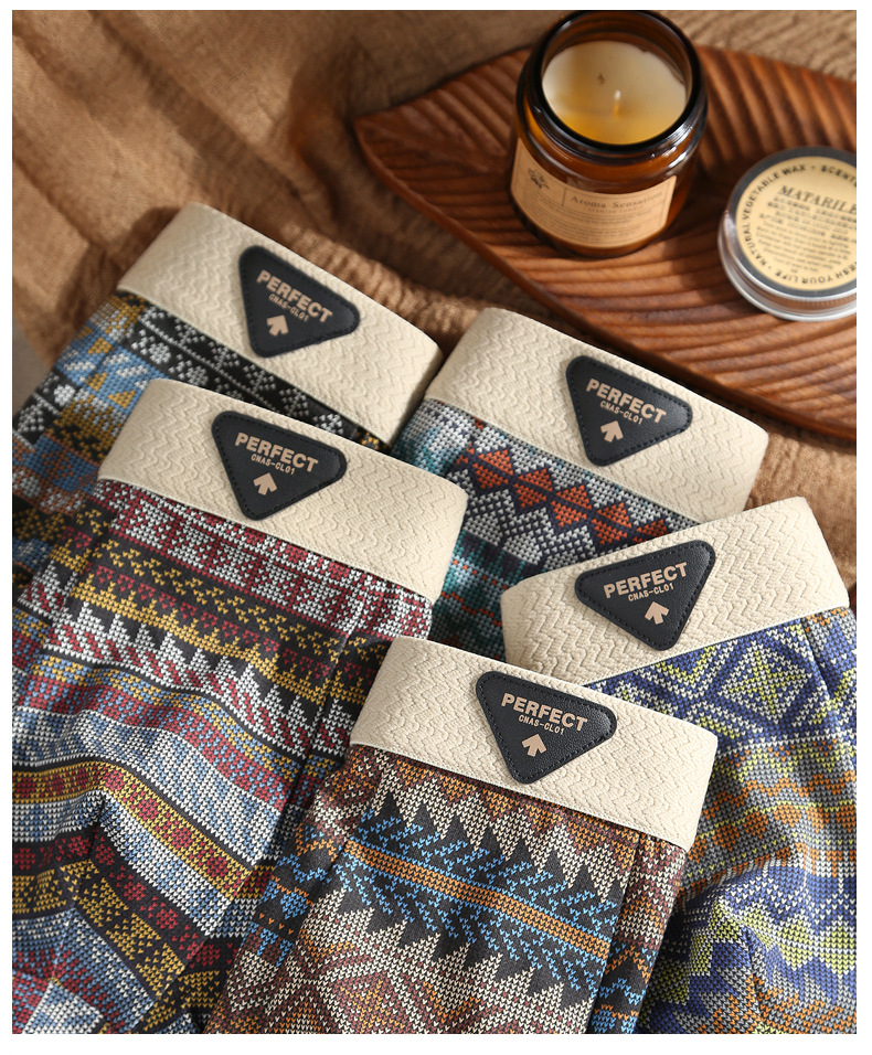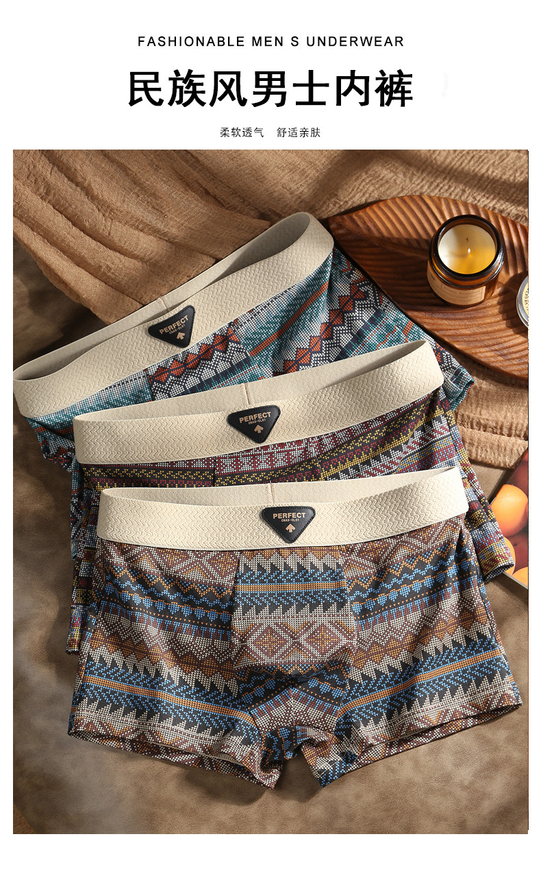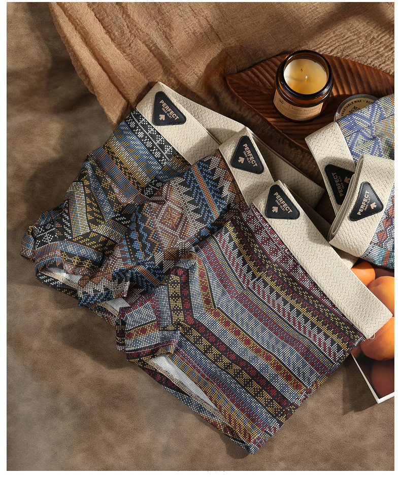 에스닉 스타일 남성 속옷 남성 복서 팬티 순면 아메리칸 레트로 미드 웨이스트 남아 복서 팬티 Douyin 핫 스타일