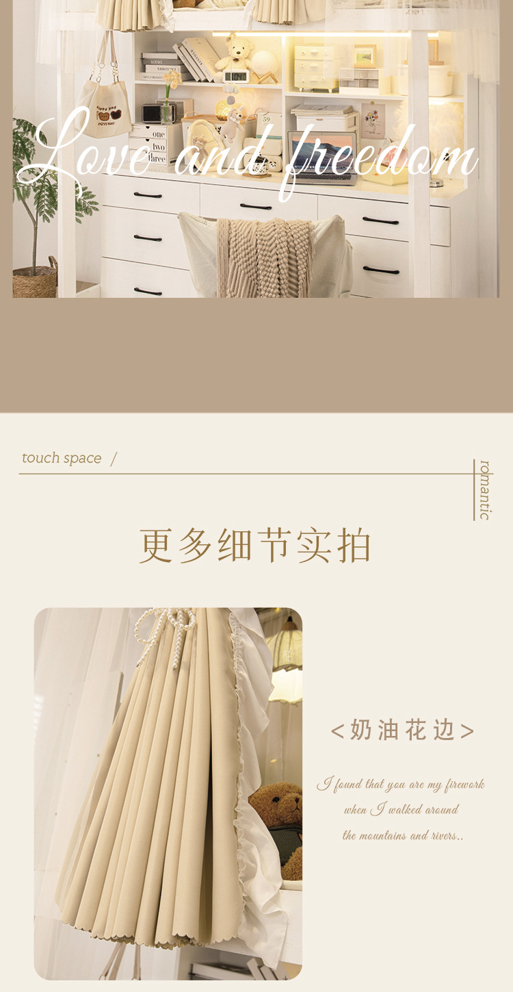 Simple Student Dormitory 프렌치 이층 침대 커튼 U자형 트랙 대학 기숙사 하단 강력한 차광 침대 커튼스토어 가기