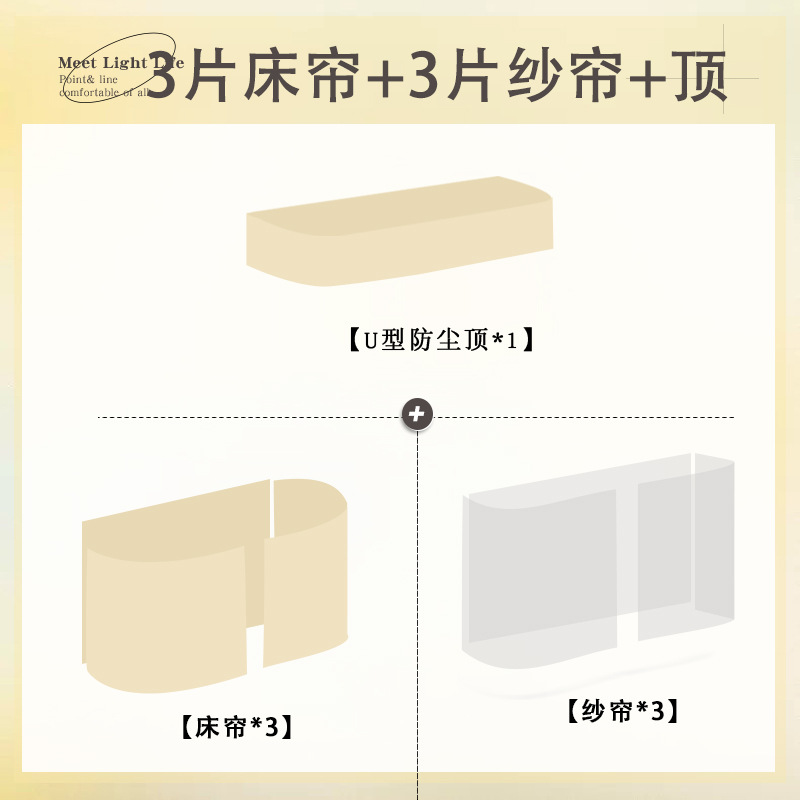 • [네브 U자형] 커튼 2개 + 실 3개 + 상판 + 브라켓 [3면이 상부 침대로 둘러싸여 있음]