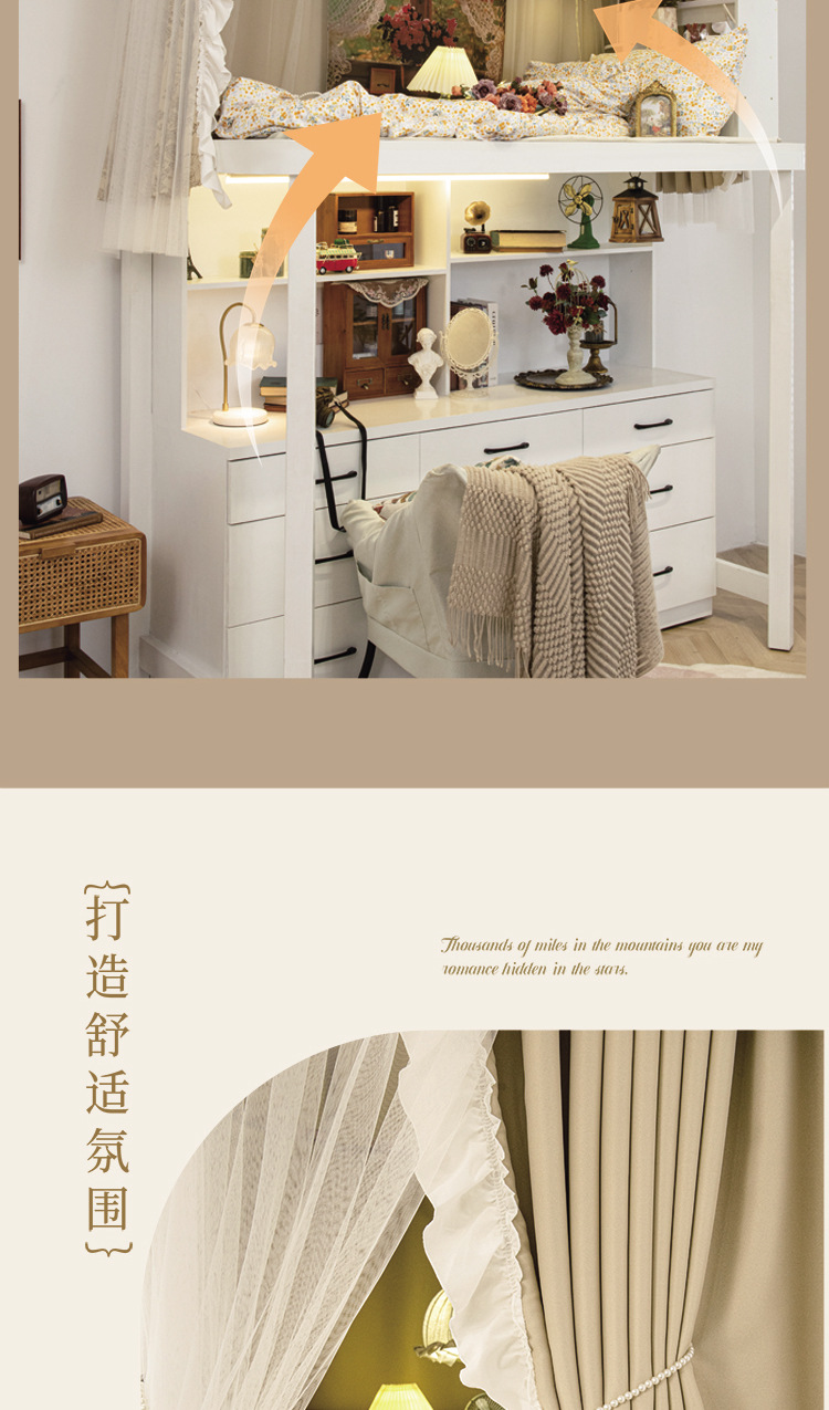• 커튼 높이 1.2m [폭 ≤ 1m 침대에 적용 가능]
