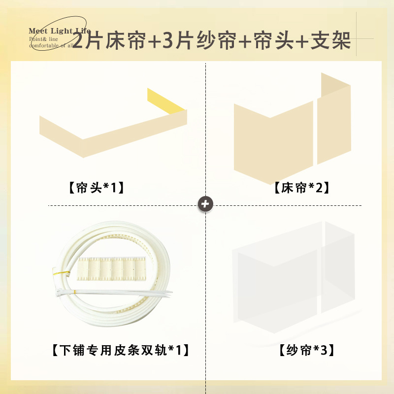 • [네이프 하부 침대] 커튼 2개 + 실 3개 + 커튼 헤드 + 가죽 스트립 더블 레일