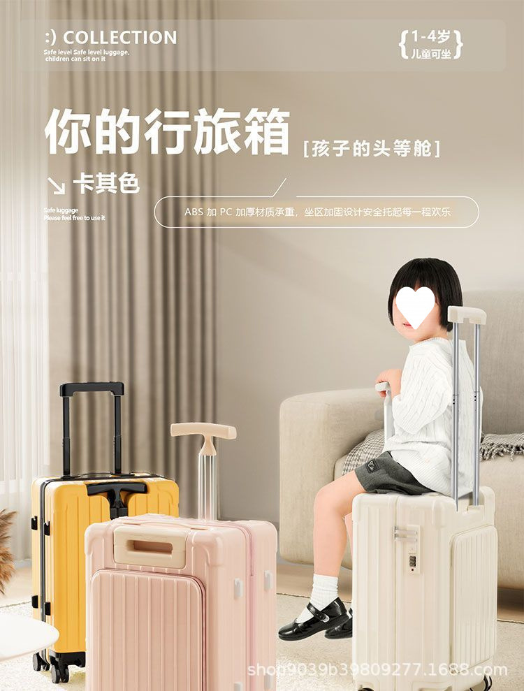 2025년 신형 더블 트롤리 여행가방, 앉고 탈 수 있는 여행가방 20inch 탑승가방, 어린이용 전면 개방형 비밀번호 상자