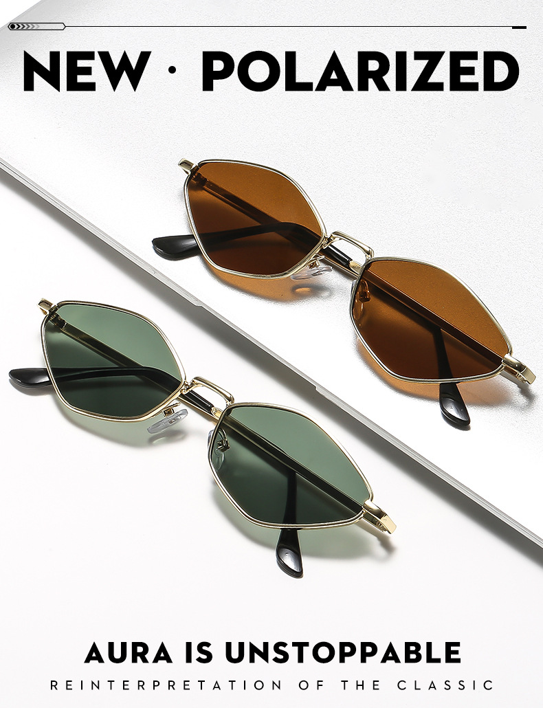 여성을위한 새로운 다각형 고양이 눈 금속 선글라스 크로스 보더 유럽과 미국의 맞춤형 야외 선글라스스토어 가기