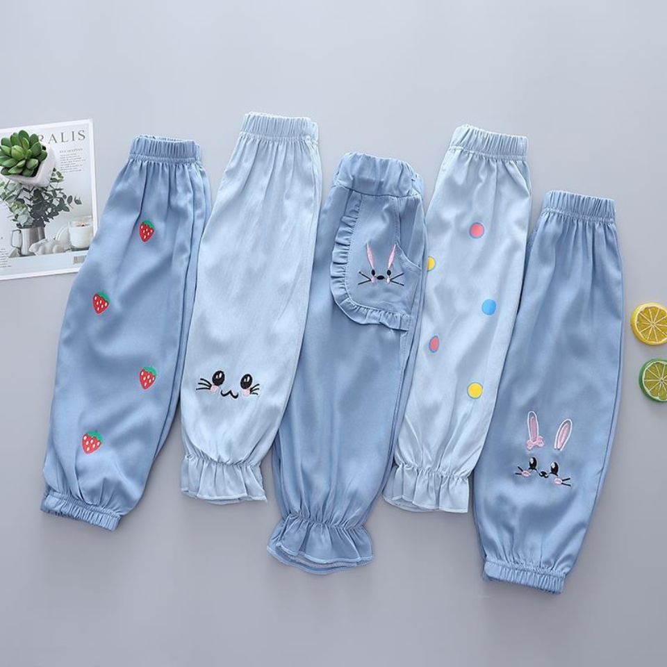여아용 아이스 실크 면 바지, 여름 얇은 아동용 바지, 청바지, 여아용 모기 방지 바지, 여름 레깅스