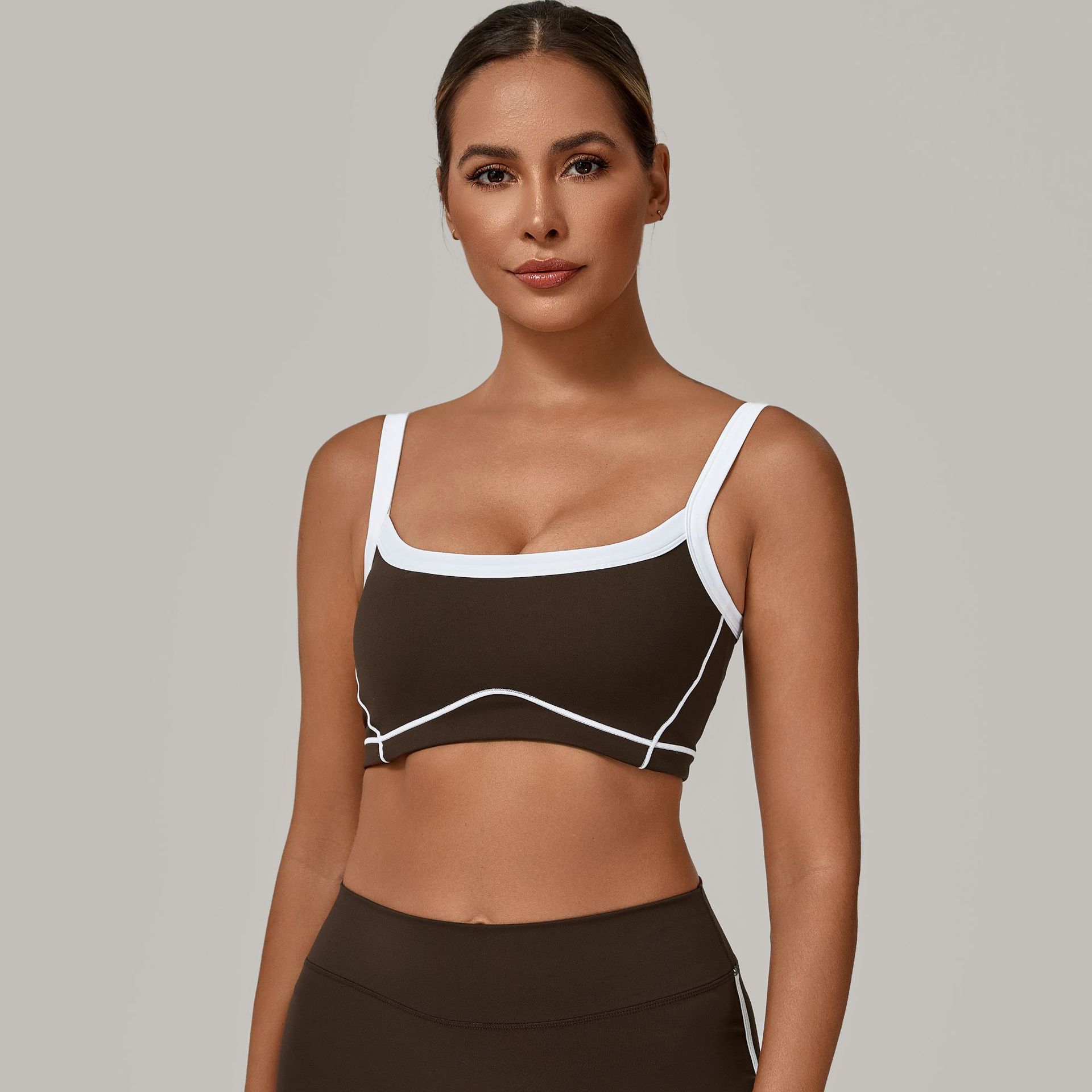 가을 샌드 콘트라스트 컬러 스플라이싱 요가 브라 더블 숄더 스트랩 아름다운 등 속건 스포츠 탑 아우터 러닝 요가복 1194