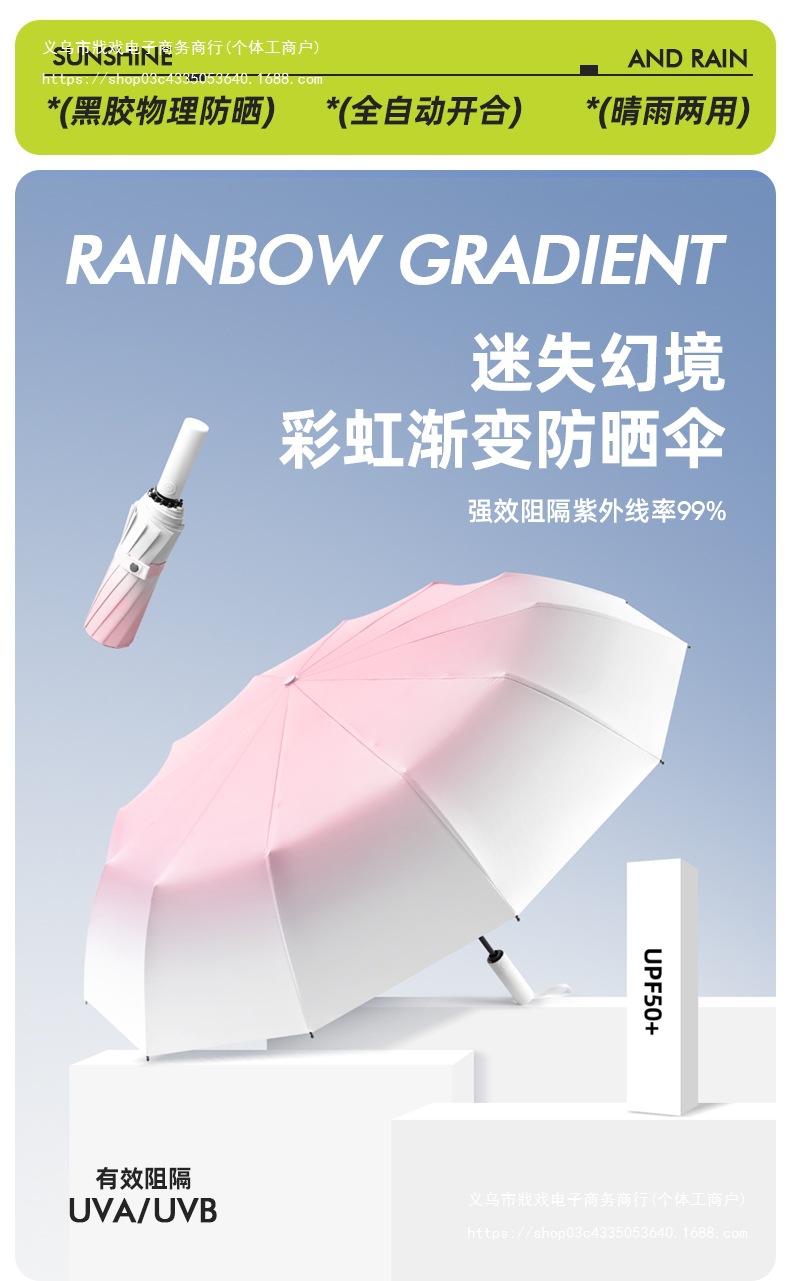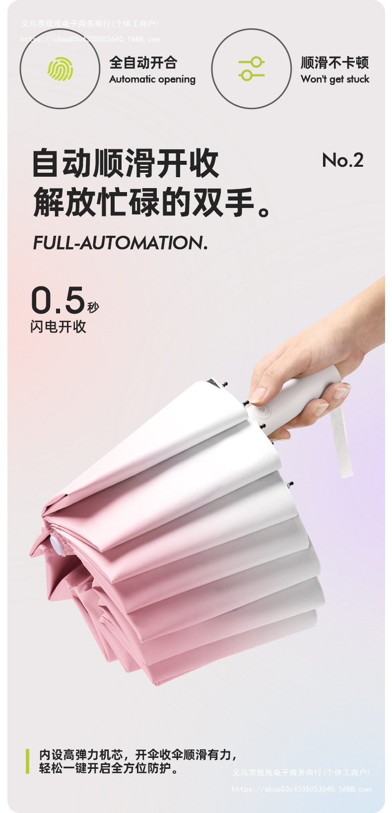 고급스러운 그라데이션 소녀용 태양 우산, 자외선 차단 및 자외선 차단, 완전 자동 태양 우산, 이중 용도 접이식 차양 및 방풍스토어 가기