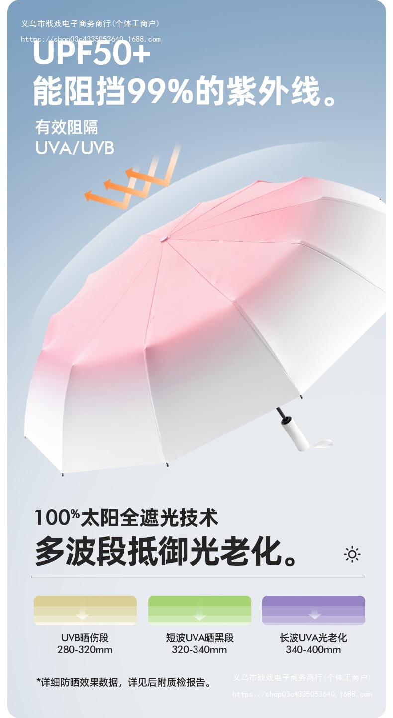 고급스러운 그라데이션 소녀용 태양 우산, 자외선 차단 및 자외선 차단, 완전 자동 태양 우산, 이중 용도 접이식 차양 및 방풍