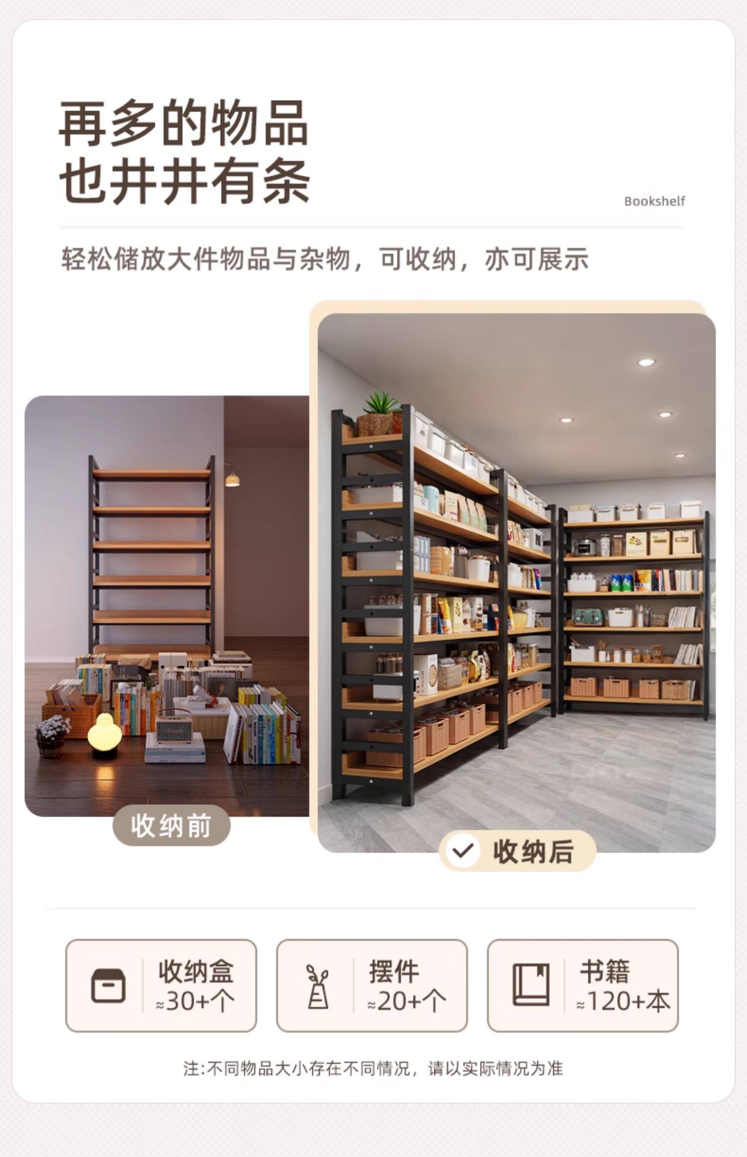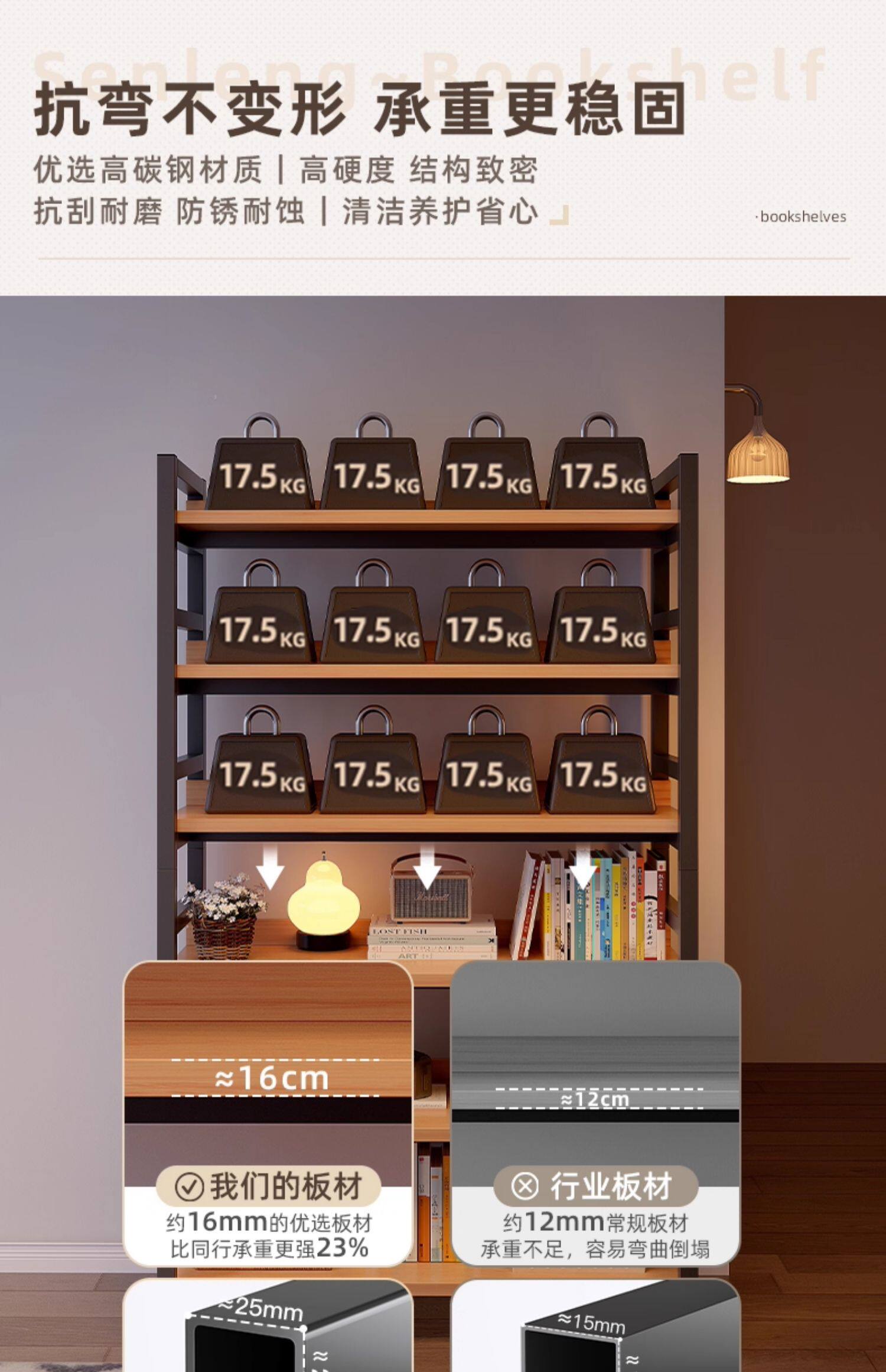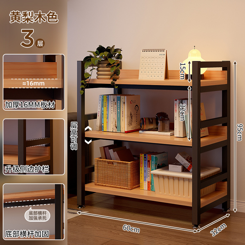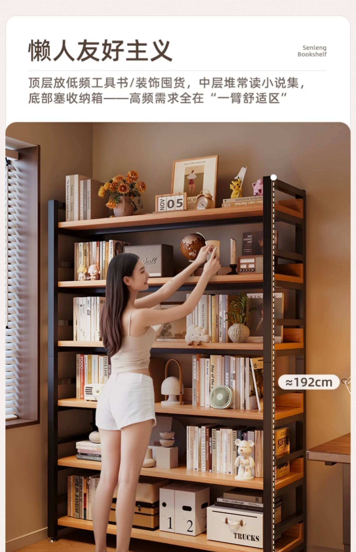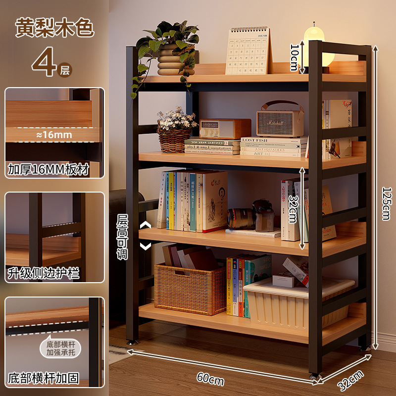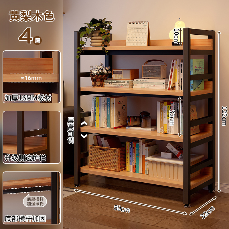 선반 수납 랙 다층 수납 랙 사무실 거실 작은 책장 바닥에서 천장까지 가정용 단단한 나무 색상 낮은 선반 수납 랙