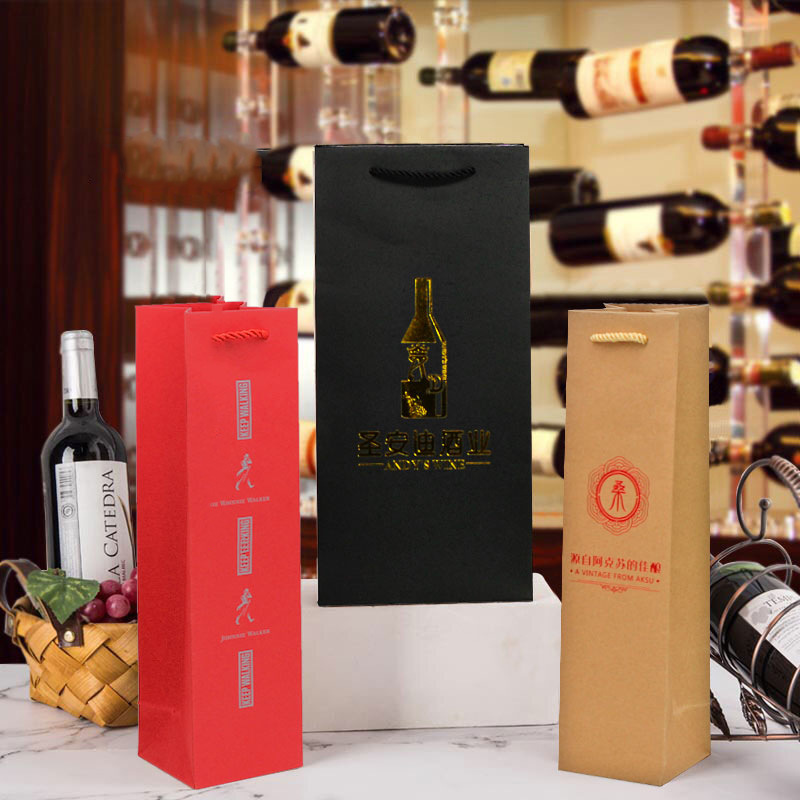 로고가 있는 맞춤형 레드 와인 핸드백, 맞춤형 광고 의류 선물 가방, 차 포장 가방, 종이 가방