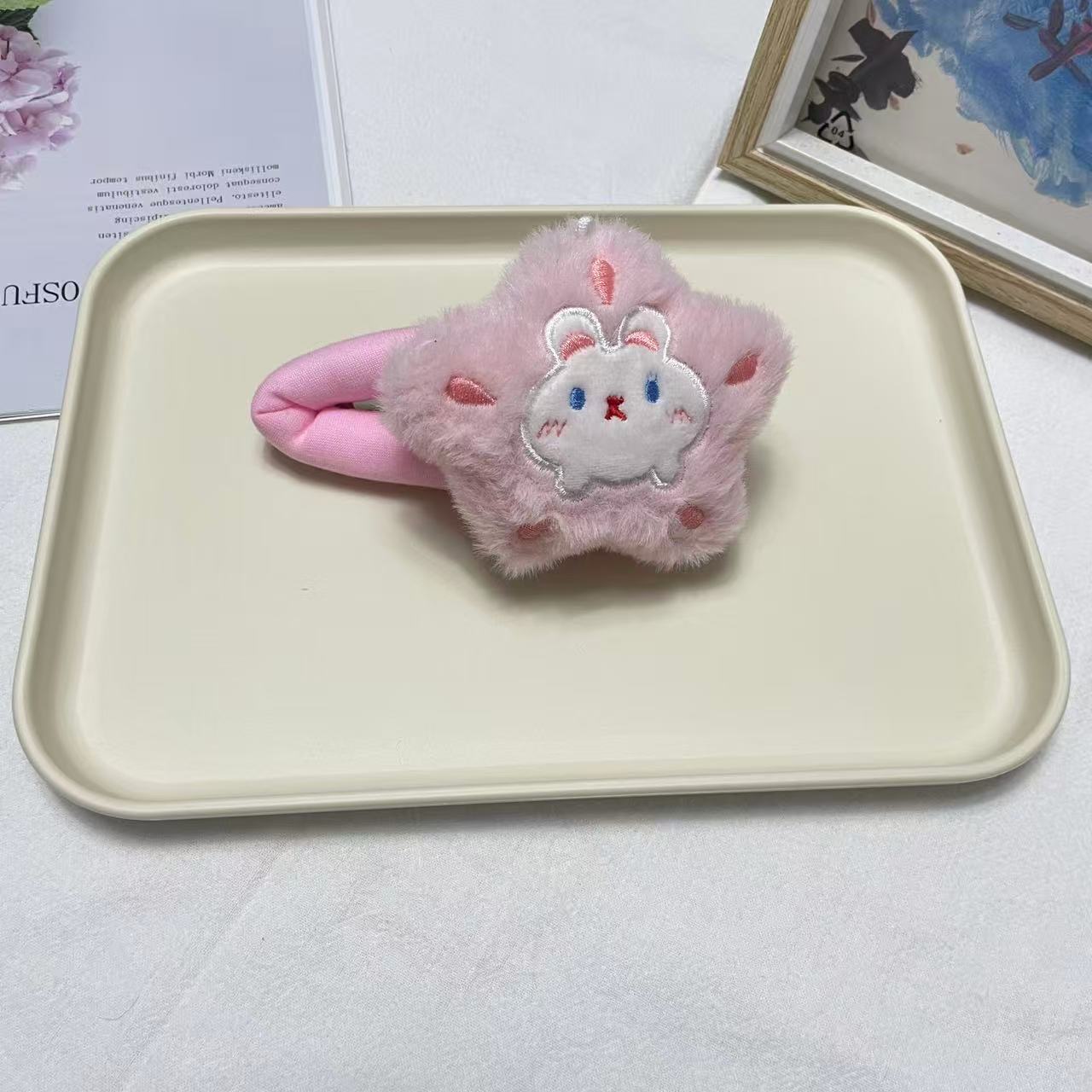 • 핑크색 대형 오각별 고양이 헤어 클립