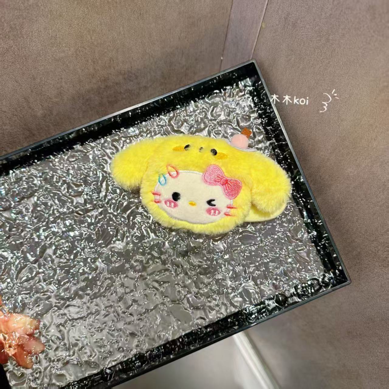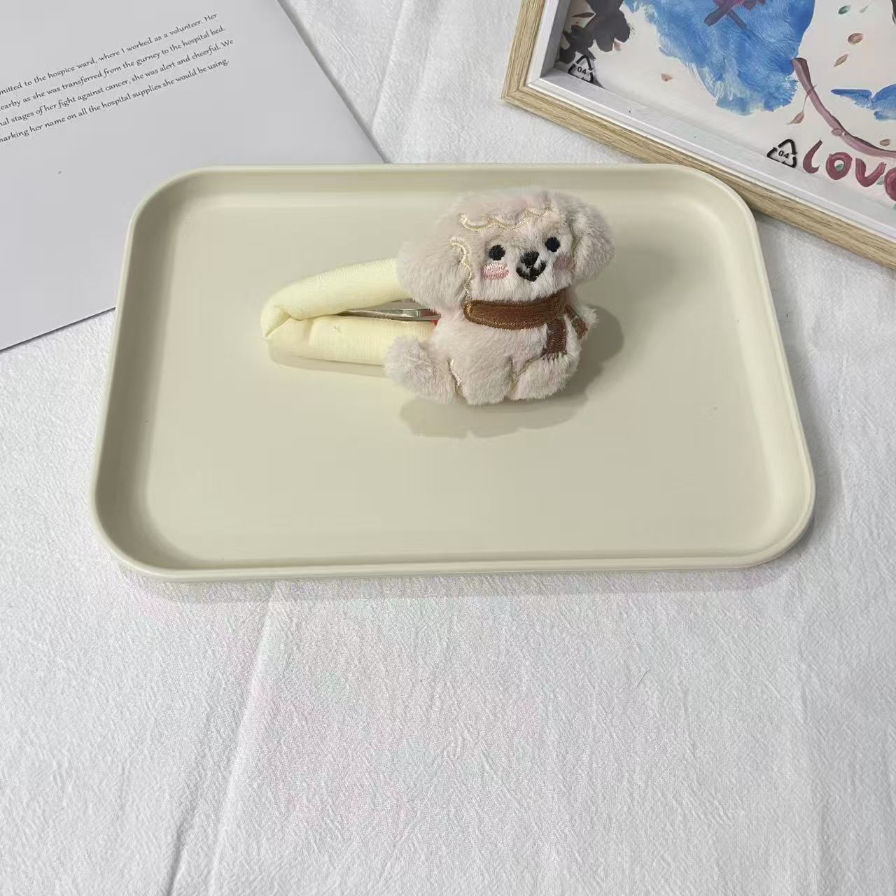 • 갈색 스카프 강아지 헤어 클립
