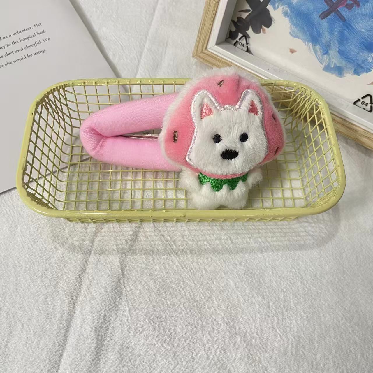 • 핑크 모자 강아지 헤어 클립