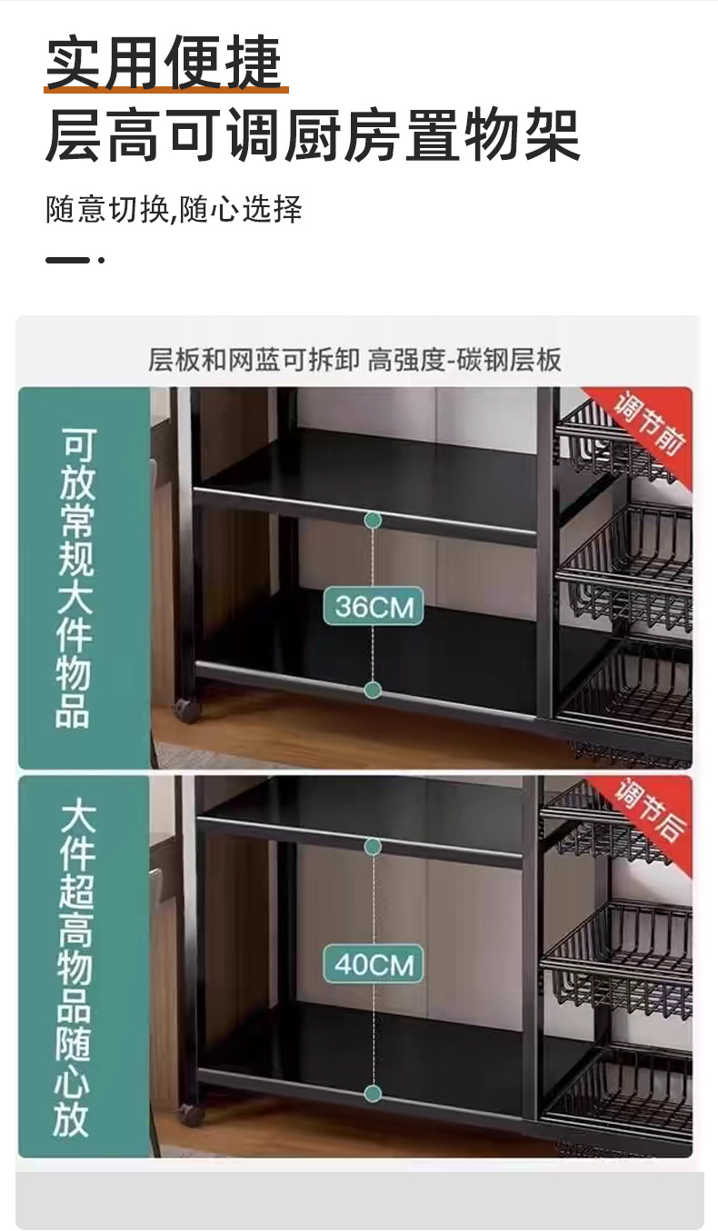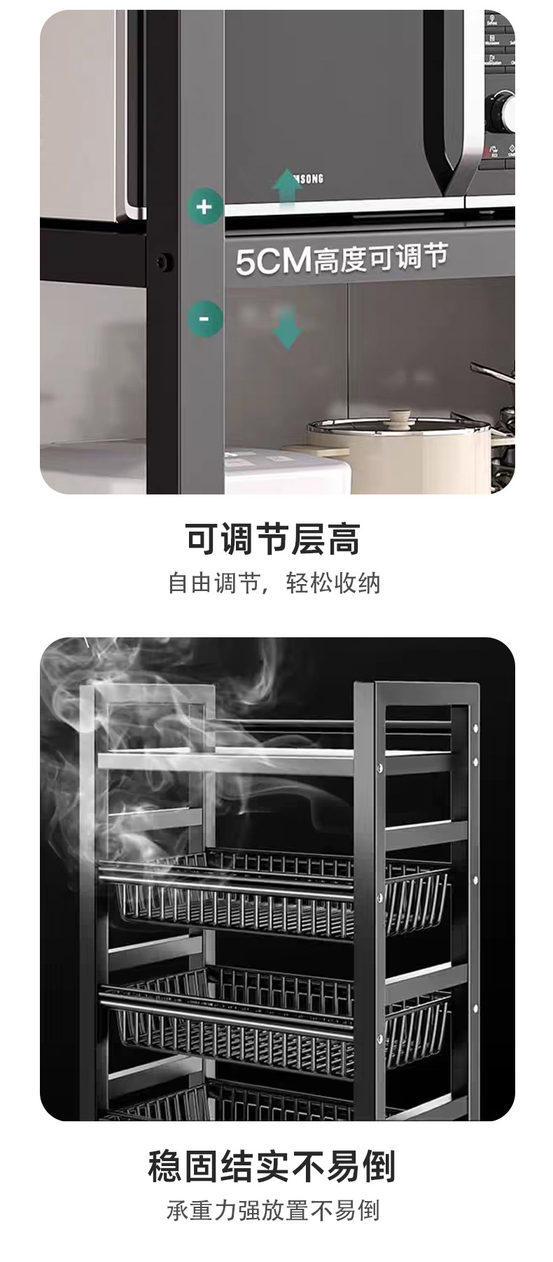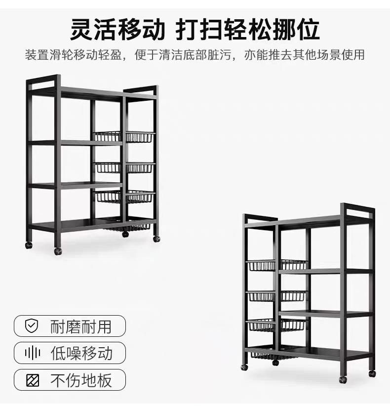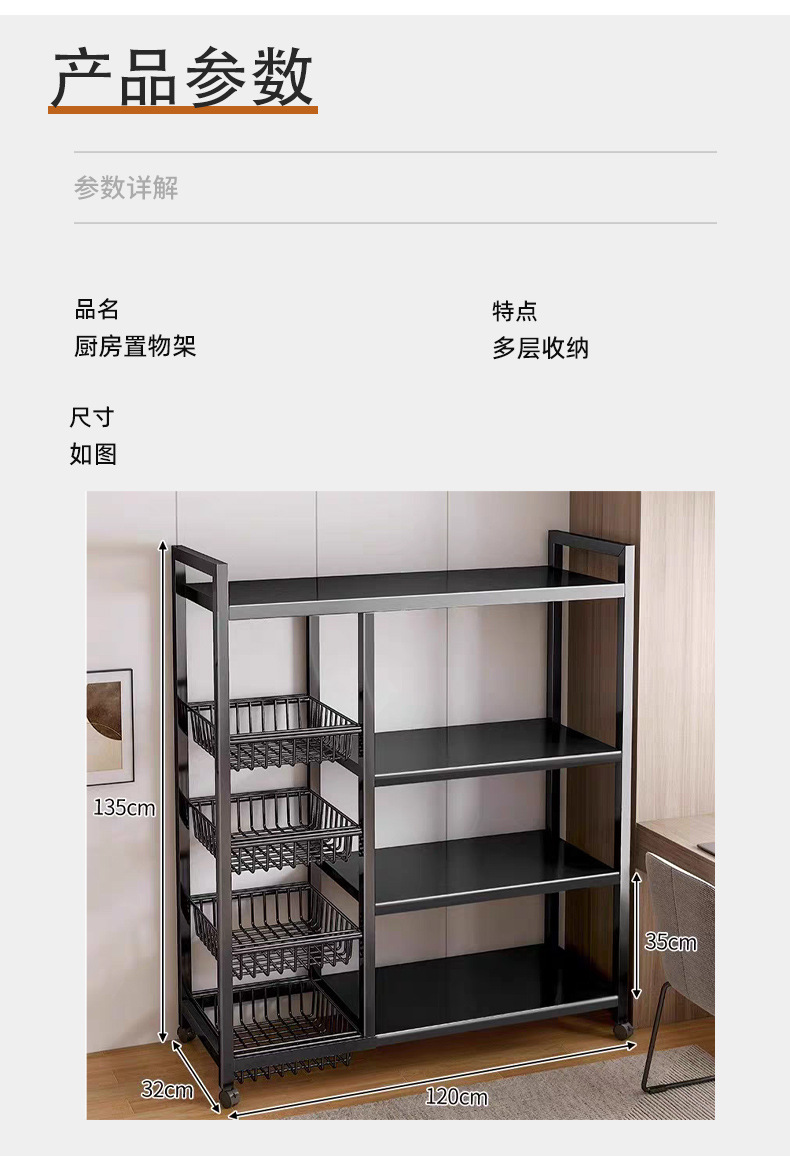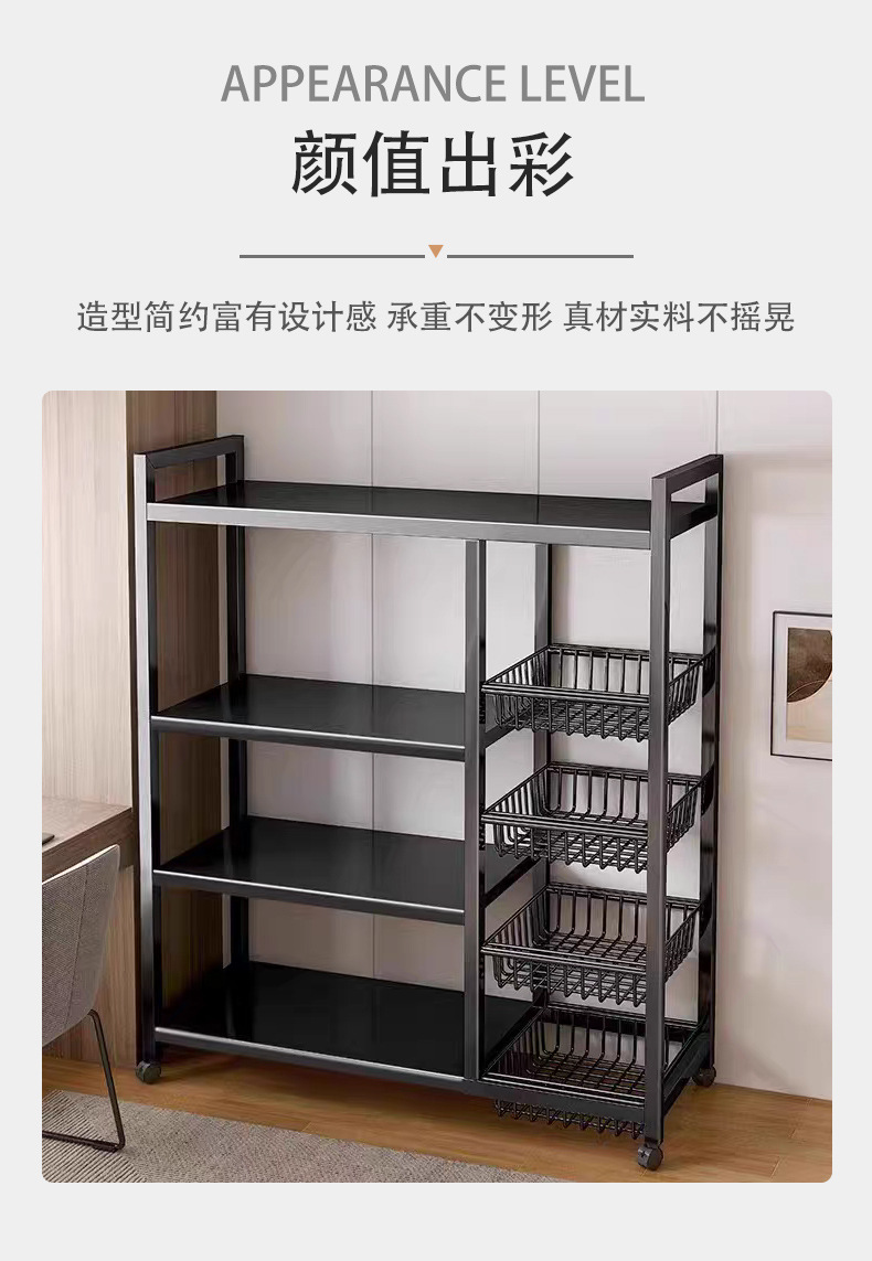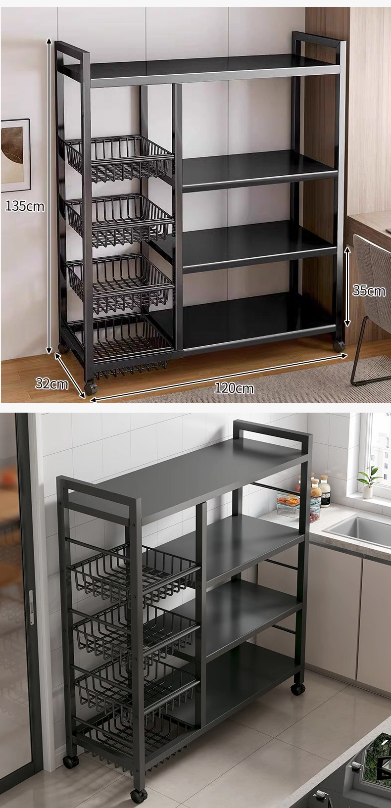 주방 수납 선반 다층 바닥형 야채 및 조리기구 보관 선반 전자레인지 오븐 간식 보관 다용도 선반