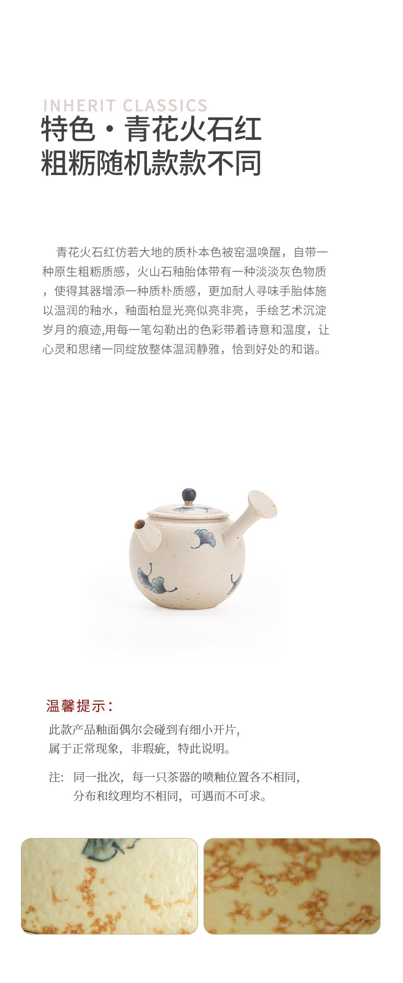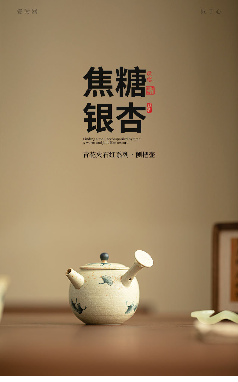 파란색과 흰색 화석 빨간색 순수 수제 주전자 사이드 핸들 주전자 쿵푸 차 주전자 세라믹 차 세트 절묘한 주전자 답답한 주전자스토어 가기