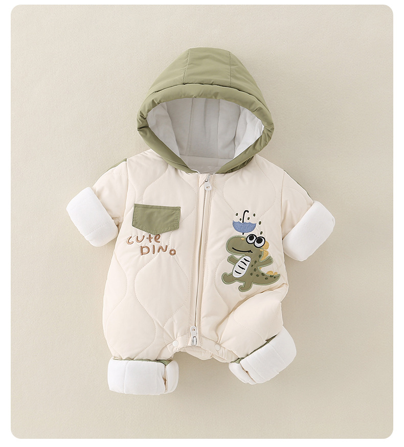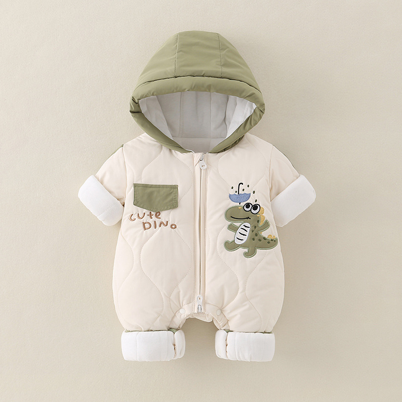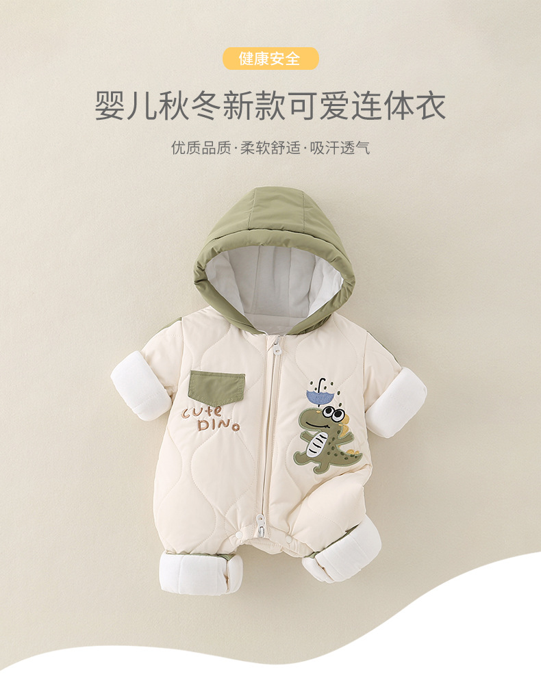 男宝宝秋冬外穿爬服儿童a类夹棉卡通恐龙连体衣婴儿衣服棉衣棉服